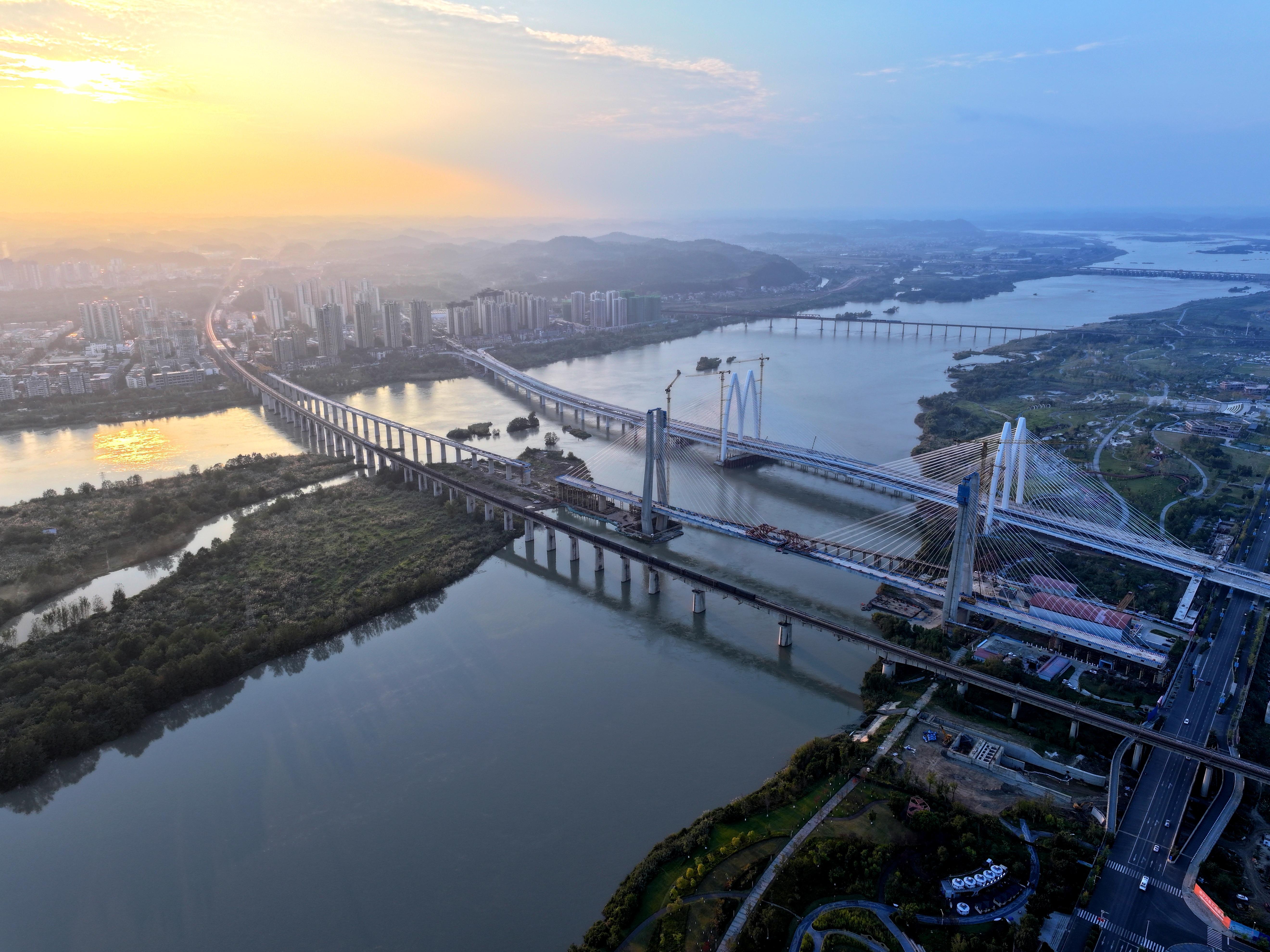 我国西南第一跨度高铁钢混结合梁斜拉桥贯通