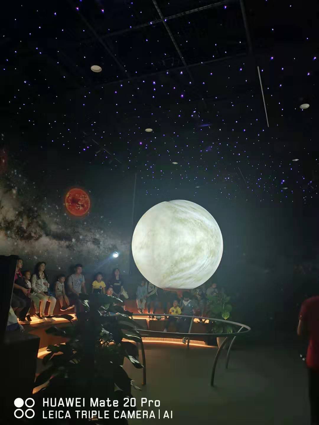 很多小朋友一入场,就被北京科学中心2号楼B1层硕大“地球”吸引住了目光。这个“小球大世界”展区是从美国国家大气与海洋管理局引进的一套球面科学展示系统,用计算机和视频投影仪将行星数据、大气风暴、气候变化、海洋温度等动画图像,以直观的形式展现在一个巨大的地球模型上……大家看得目不转睛,看完后几乎异口同声地赞叹道:“太壮观了!”