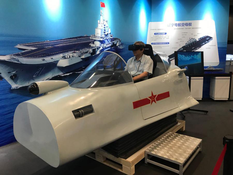“嘟嘟……油料耗尽,迅速返航!”“不错!击中了18架”。9月14日,以“礼赞共和国、智慧新生活”为主题的2019年全国科普日开启,在中国科技馆主会场,观众戴上VR眼镜坐到驾驶舱里,模拟在辽宁号航空母舰上驾机并击落敌机的乐趣。