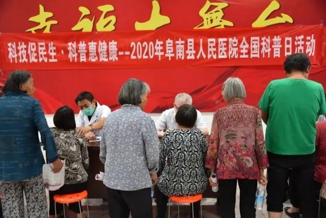 9月15日,由阜南县人民医院举办的科技促民生、科普惠健康全国科普日义诊活动在鹿城镇红旗、六里社区举行。