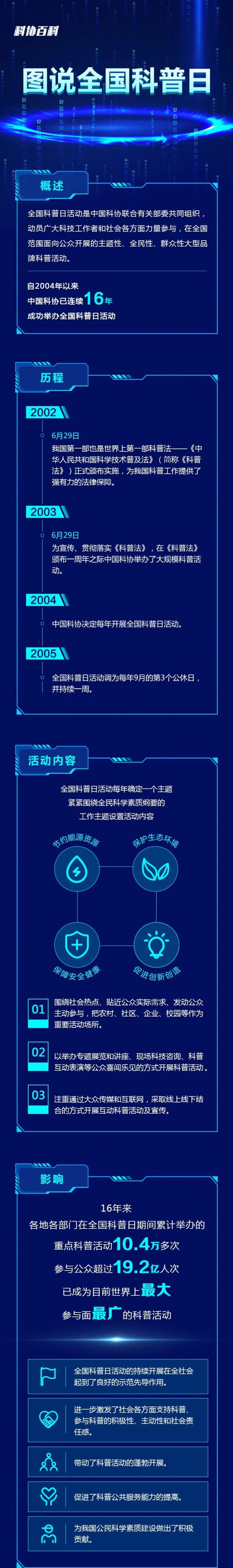 2003年6月29日,在《中华人民共和国科学技术普及法》正式颁布实施一周年之际,为在全国掀起宣传贯彻落实《科普法》的热潮,中国科协在全国范围内开展了一系列科普活动。自此,中国科协每年都组织全国学会和地方科协在全国开展科普日活动。