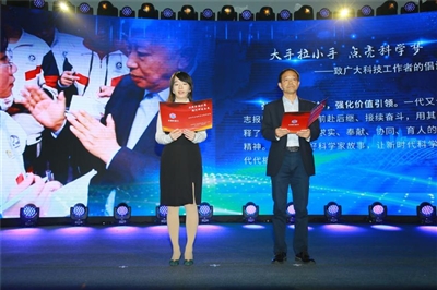 9月19日,在2020年全国科普日特别活动上,“大手拉小手科普报告汇”举行成立仪式。仪式上,中国科学院院士、中国科学院国家天文台研究员武向平,中国科学院光电研究院研究员、北斗专家徐颖代表“大手拉小手科普报告汇”,向全国广大科技工作者发出倡议,号召更多科技工作者携起手来,积极参与青少年科技教育工作,让新时代科学家精神代代相传,为培养具备科学家潜质的大批青少年群体厚植文化沃土。