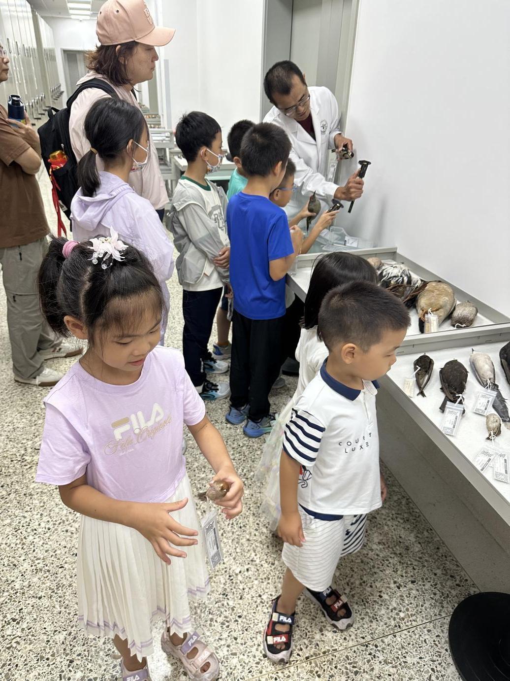 “鸟类标本的肚子里填充的是什么呀?”“这个大鸟蛋是哪种鸟的?”“游标卡尺怎么用?”……小朋友们在轻松愉快的氛围中的和科研人员互动。