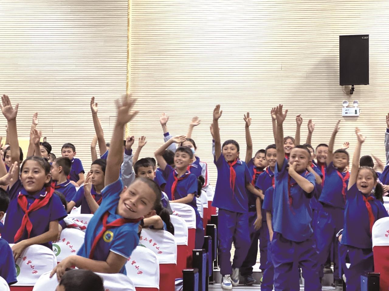 9月16日至17日,“科学教育天山行”之实验探秘校园行活动走进新疆维吾尔自治区喀什市疏勒县东营第二希望小学、疏勒县英尔力克乡中学(齐鲁第三中学)、伽师县巴仁镇第四小学、伽师县巴仁镇第五中学。河南省郑州科学技术馆实验展演团队(以下简称“郑州科技馆团队”)、北京市紫竹院公园管理处实验展演团队(以下简称“紫竹院公园团队”)分别为近2000名学生带来沉浸式科学实验展演——《速影寻真》《季节起始与音乐定音,古人用几根竹竿就搞定了》,这两支团队曾分别在全国科学实验展演汇演活动中获得特等奖与一等奖。