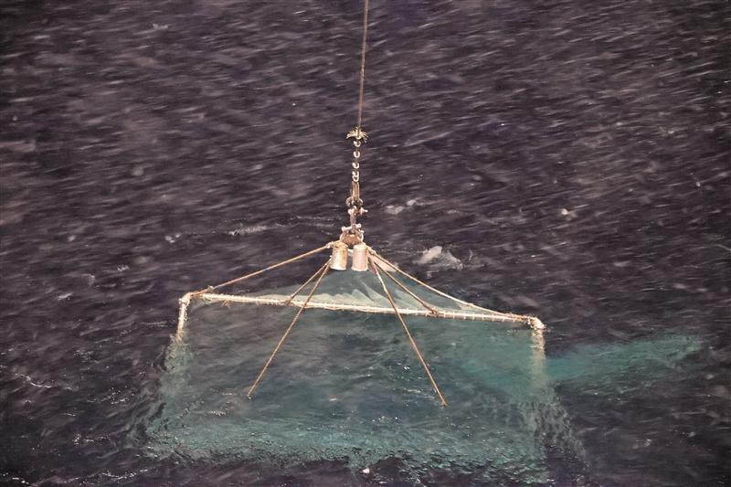 船时1月22日晚,风力八级,大雪漫天。四五名考察队员好不容易将拖网放入海中,仅半小时就因风向突变导致拖网偏离预设轨迹,只能顶着风雪紧急收网,忙活数小时却仅收获1尾南极电灯鱼。“南极并不会为科学考察预留‘温柔时刻’。”王业辉说,“虽然面临重重挑战,但此次在南极半岛附近海域,我们仍完成了4站中层鱼拖网调查,获得中层鱼类样品35尾。”