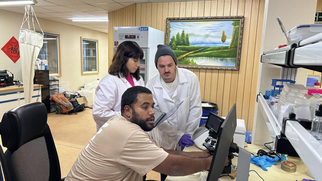 多年来,我国积极拓展南极考察“朋友圈”,邀请智利、泰国、葡萄牙等国家科研人员参加南极考察和合作研究,展现出我国南极考察平台的国际性和包容性。今年,索萨的同事凯奥·塞萨尔·里贝罗(Caio Cesar Ribeiro)和泰娜·丰塞卡(Tainá Fonseca)也来到这里,进一步探究气候变化与海洋酸化对南极生物地球化学循环的影响。