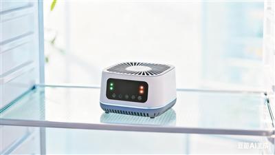 这款净化仪的工作原理是通过高压电离的方式生成臭氧,利用臭氧杀菌、除味。同时,它内部搭载的AI芯片和空气质量监测传感器,可以根据冰箱内部空气质量实时调节功率和工作模式。用户还能通过相关手机App实时查看冰箱内部空气质量。