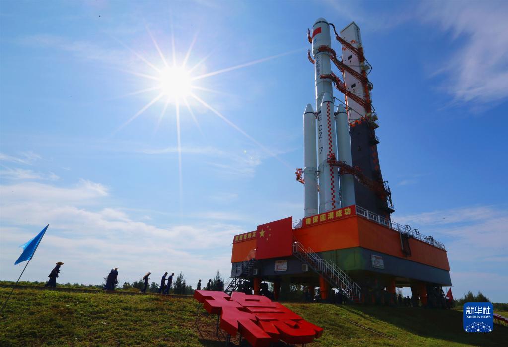2017年4月20日,长征七号托举着天舟一号货运飞船腾空而起。这是天舟货运飞船和长征七号运载火箭组成的空间站货物运输系统的首次“搭档”。