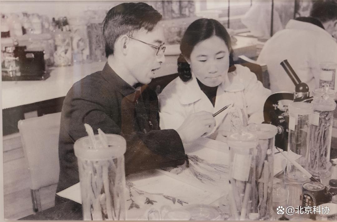 任研究实习员的屠呦呦(前右)与老师楼之岑副教授一起研究中药