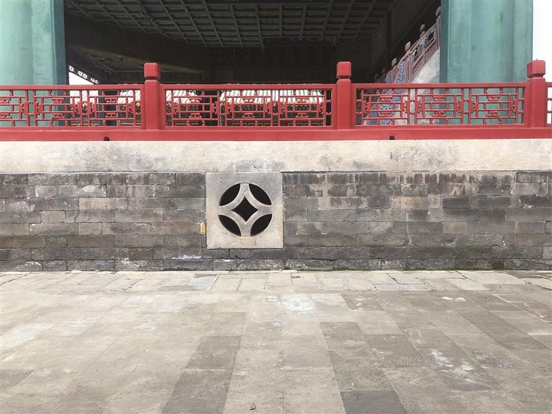 那么,被放大的声音是如何清晰地传到观众耳中的?畅音阁地下层的顶棚高于庭院地面,东西两侧墙壁上各开了3个透气孔。这些孔洞不仅是通风口,更是传音通道。放大后的声音正是通过这些孔洞传到庭院中,让观众能够听清台上的唱词。
