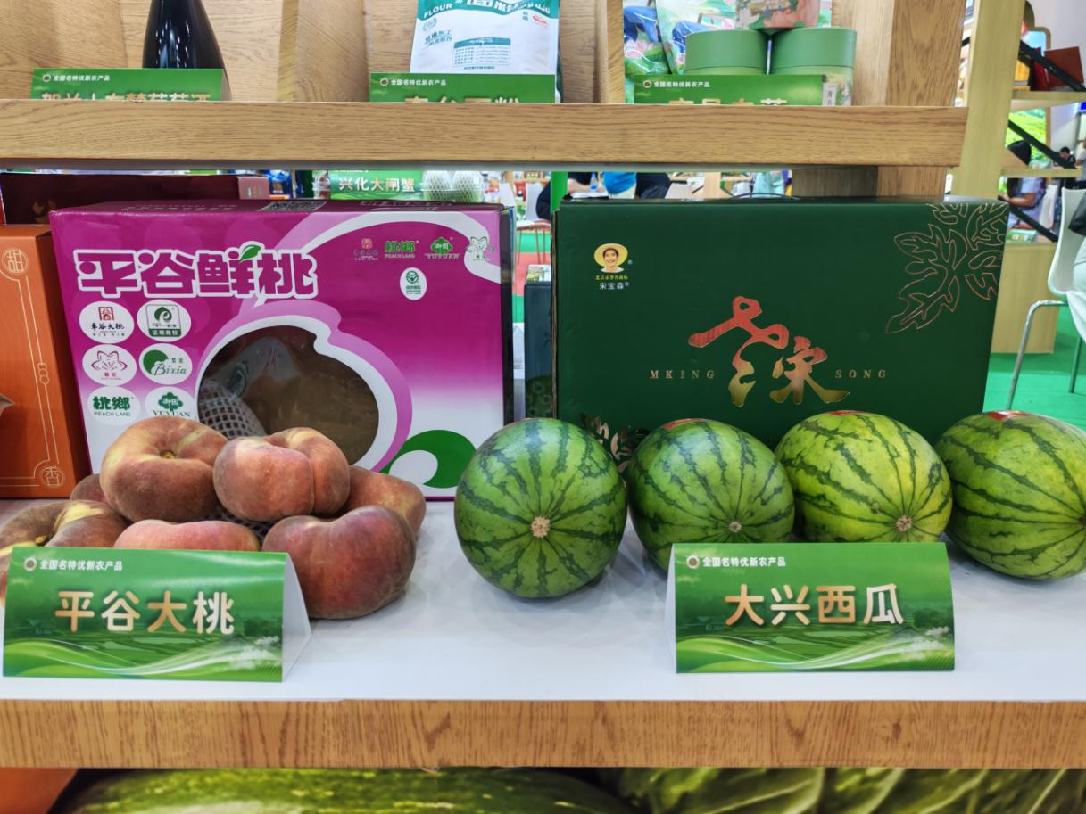 平谷大桃、京纯的密云荆花蜂蜜、翠湖的知翠番茄、老宋瓜王的西瓜、绿嘟嘟农庄的北京油鸡蛋、食为先的韭菜、红泥乐农场的韭菜等7个特色农产品集中亮相。平谷大桃、大兴西瓜2个产品在全国农业精品品牌区展示。农业农村部农产品质量安全中心主任孔亮来北京展区巡馆,对我市名特优新和特质农品等特色农产品产业发展成果给予肯定。