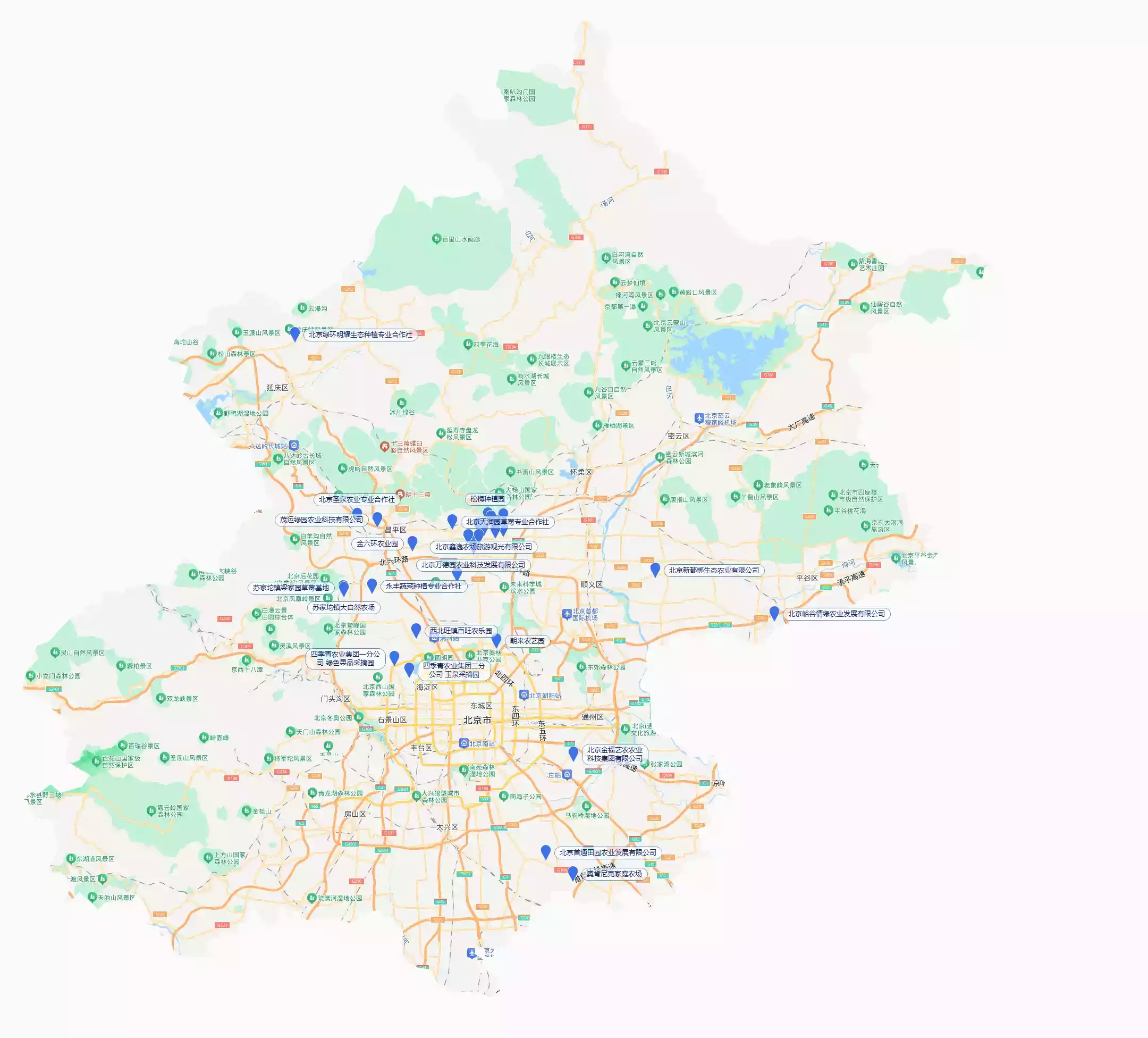 每一处标记,都是对各位朋友的诚挚邀请,欢迎大家点击地图,跟随“北京草莓之星”摘草莓,享受甜蜜生活。