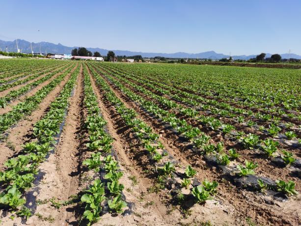 (4)茬口衔接与管理。作物选择:前茬(生菜、西蓝花、甘蓝、娃娃菜、大白菜等),后茬(生菜、耐寒西蓝花、中甘25甘蓝等);时间安排:春茬3月下旬- 6月中旬,秋茬7月中旬- 10月中下旬;定植方式:后茬人工定植于前茬两定植点之间,每垄2行、每穴1株;水肥管理:两茬生长期共灌溉2-3次(单次10-12方/亩,晴天中午灌溉),春茬、秋茬各冲施尿素5kg/亩+平衡肥(19-19-19)4kg/亩;除草清茬:前茬采收后晾15-20天,喷施200克/升草铵膦(40-60ml/亩),避免杂草影响后茬。