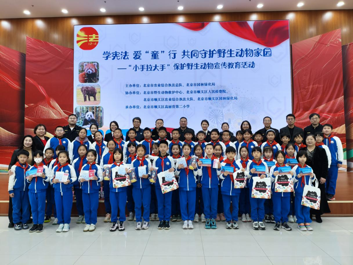12月1日,在第十二个“国家宪法日”来临之际,为在孩子们心中播下法治与生态文明的种子,北京市农业综合执法总队联合市园林绿化局执法处、野生动植物救护中心、顺义区人民检察院、顺义区农业综合执法大队、顺义区园林绿化局,在顺义区高丽营第二小学举办了主题为“学宪法 爱‘童’行 共同守护野生动物家园”的野生动物保护宣传活动。