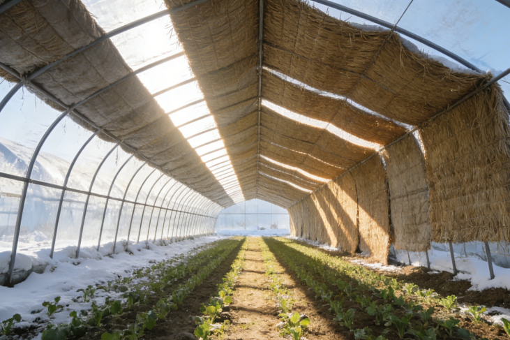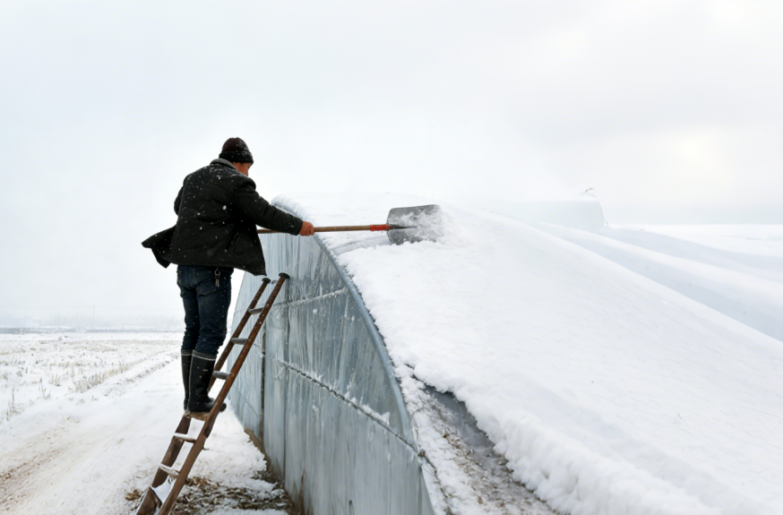 降雪期间,低温冻害与棚内高湿是土壤管理的两大痛点。此时需以 “保温防涝” 为核心,密闭棚室减少热量流失,避免土壤温度骤降引发冻害。若棚内湿度超标,可在中午短暂开小口排湿,防止土壤表层结露形成冰壳,损伤根系呼吸。同时,需及时清扫棚顶积雪,避免棚体受压坍塌,同时避免覆雪挡住光线;对于棚内温度持续低于6℃的区域,启用热风炉、增温块等设备时,可在土壤表面覆盖一层干稻草或无纺布,进一步隔绝低温,保护根系不受冻。