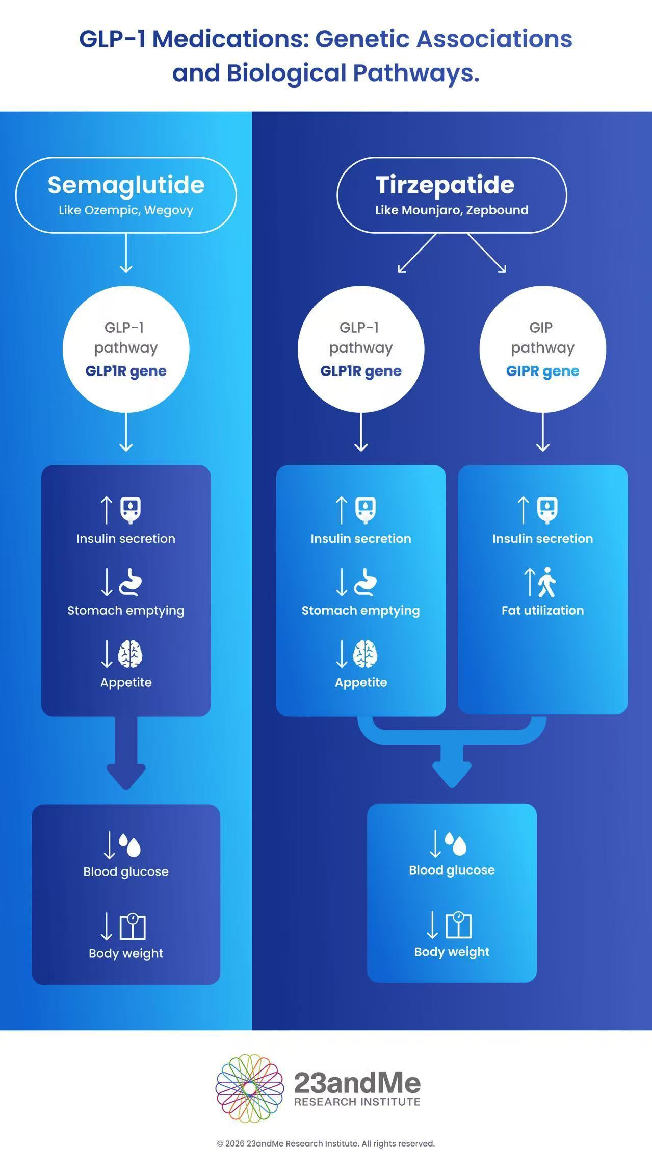 近日,一项发表在权威期刊《自然》上的研究首次揭示了两个与食欲、消化紧密相关的基因变异,可能与人们对这类GLP-1受体激动剂药物的不同反应有关。这项研究由基因检测公司23andMe研究所科学家完成。他们像侦探一样,在数据库浩瀚的基因海洋中搜寻与药效差异相关联的蛛丝马迹。最终,锁定了关键的基因变异。