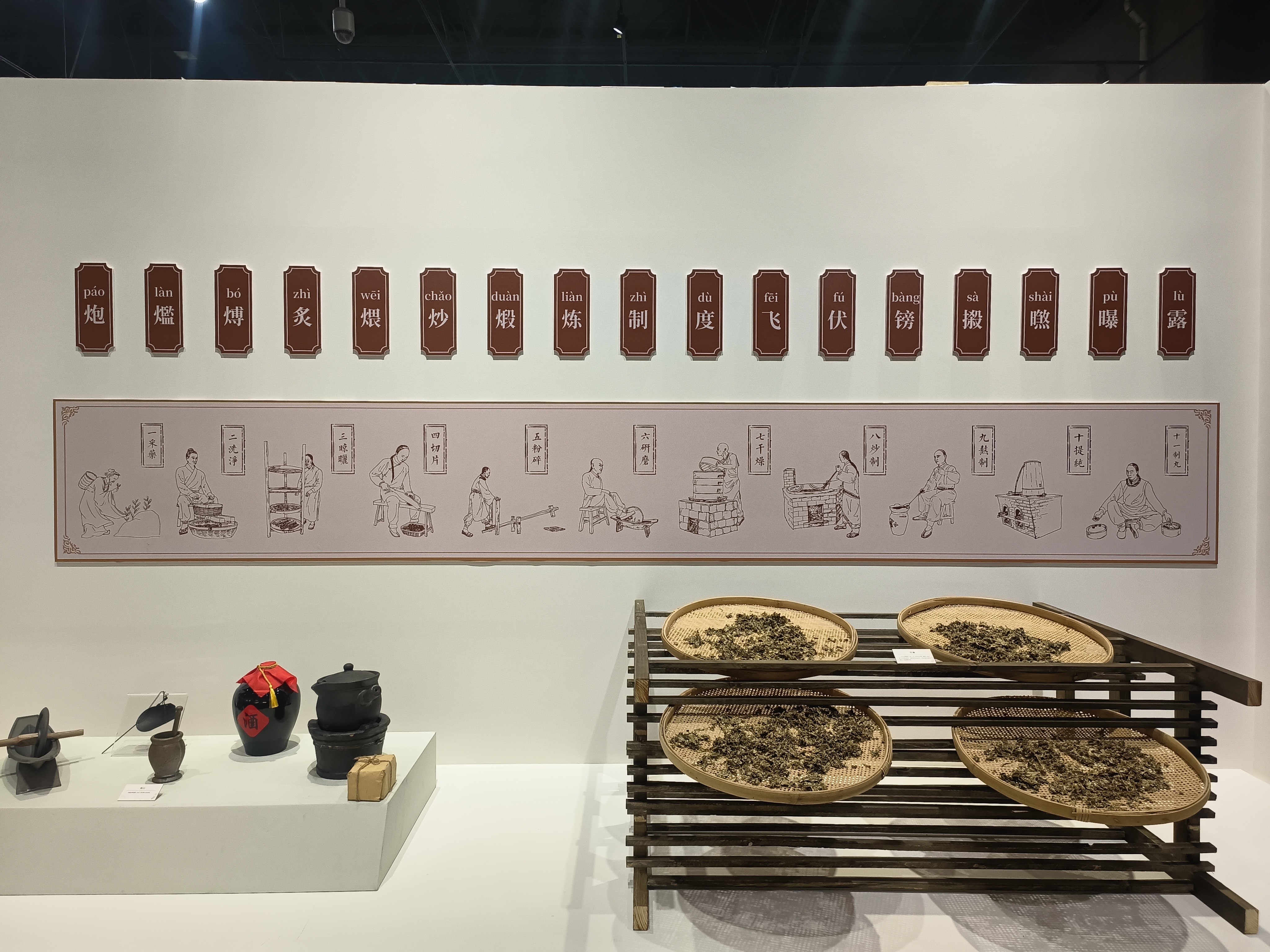 第二单元“本草传奇”主要介绍中药的制作与传承,展示了传统本草炮制技艺与现代制剂技术的融合与创新。展览详细展示了中药炮制的过程和特殊工艺,以及现代科技在中药制剂中的应用与发展。