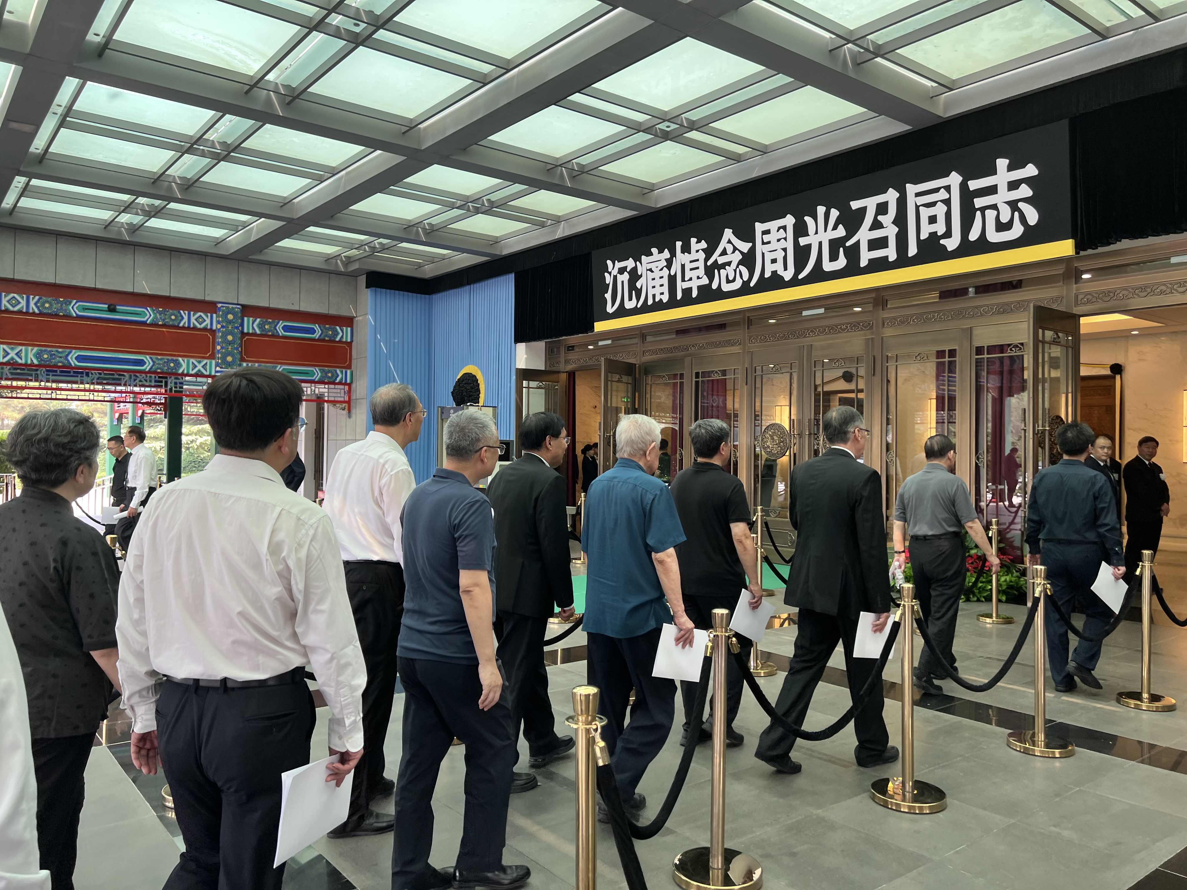 我们首都的科技工作者怀着敬仰和缅怀的心情向周光召遗体送别。