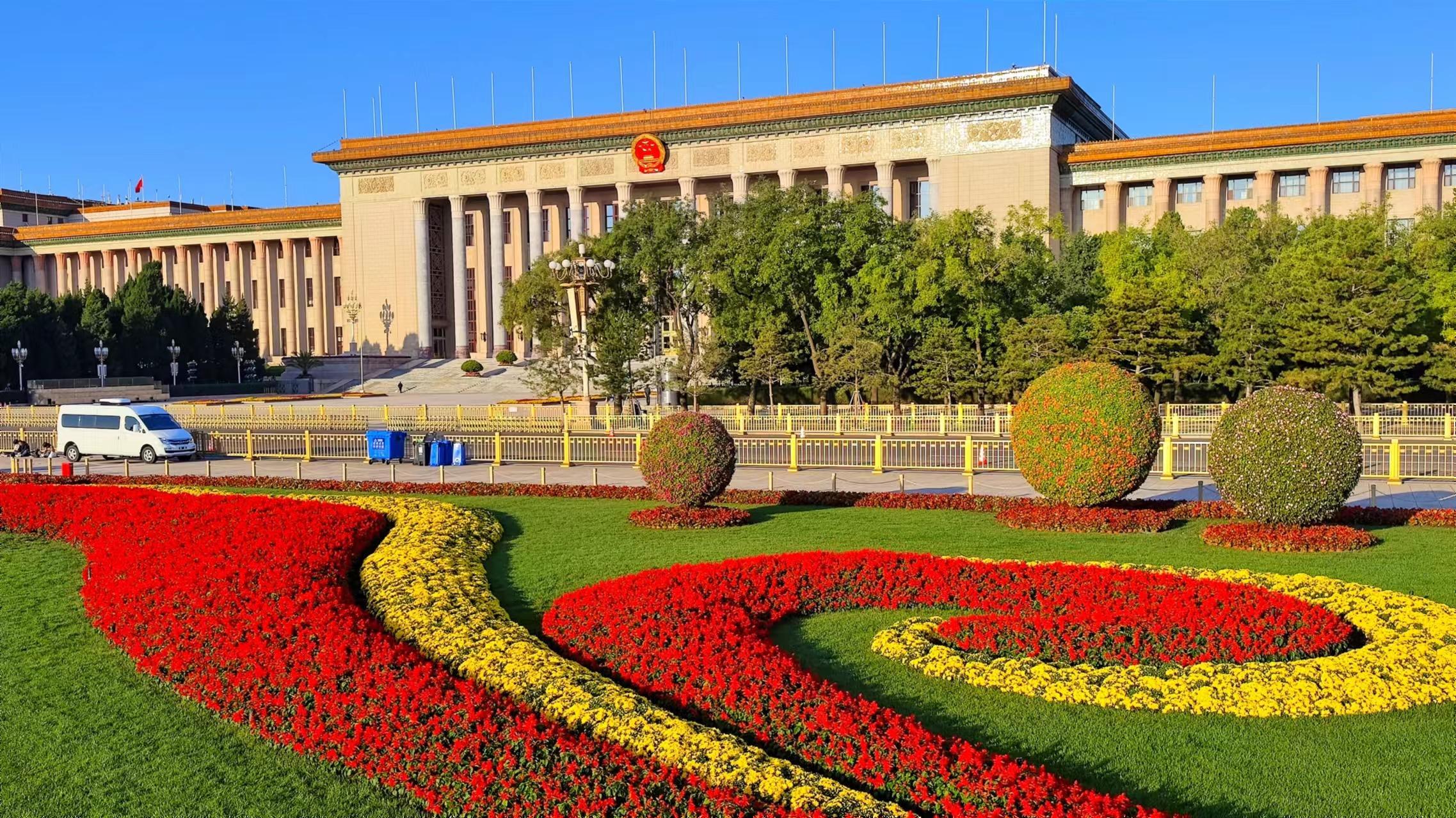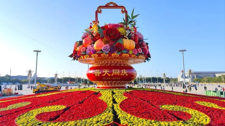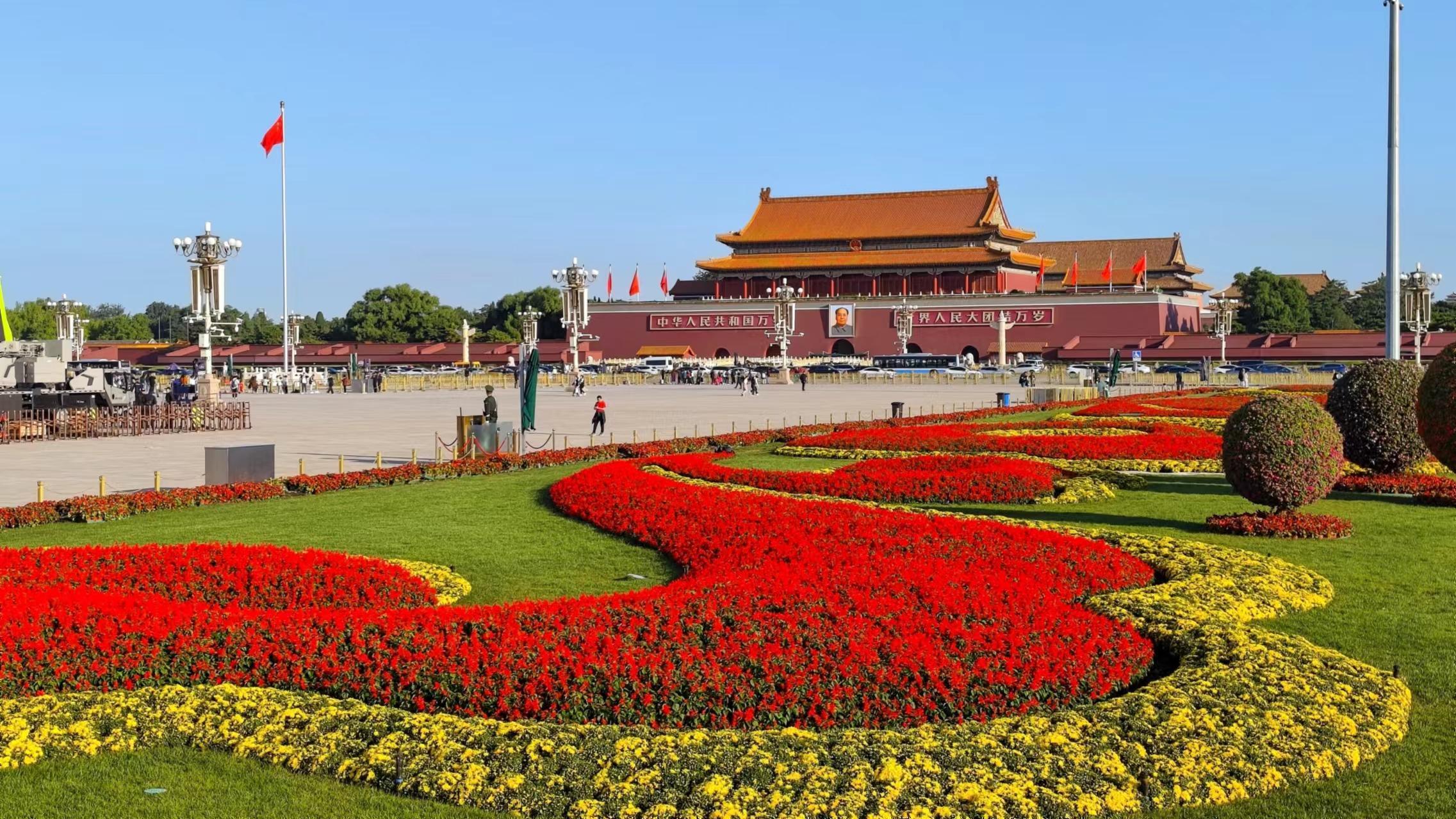 天安门广场花团锦簇盛装迎国庆