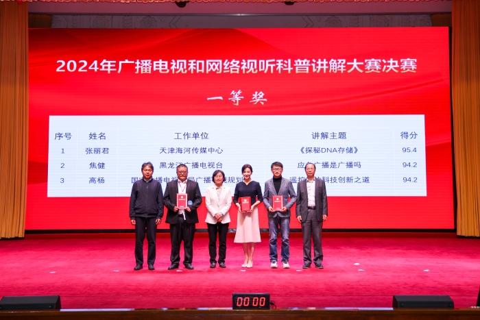 经过激烈角逐和评委现场评分,天津海河传媒中心张丽君、黑龙江广播电视台(黑龙江省全媒体中心)焦健、广电总局广播电视规划院高杨等3人获得一等奖(推荐参加第十一届全国科普讲解大赛),东方明珠新媒体股份有限公司张世乐等8人获得二等奖,广电总局广播电视科学研究院郑蕤荻等11人获得三等奖。广电总局科技司、人事司、机关党委及部分直属单位负责同志为获奖选手颁奖。