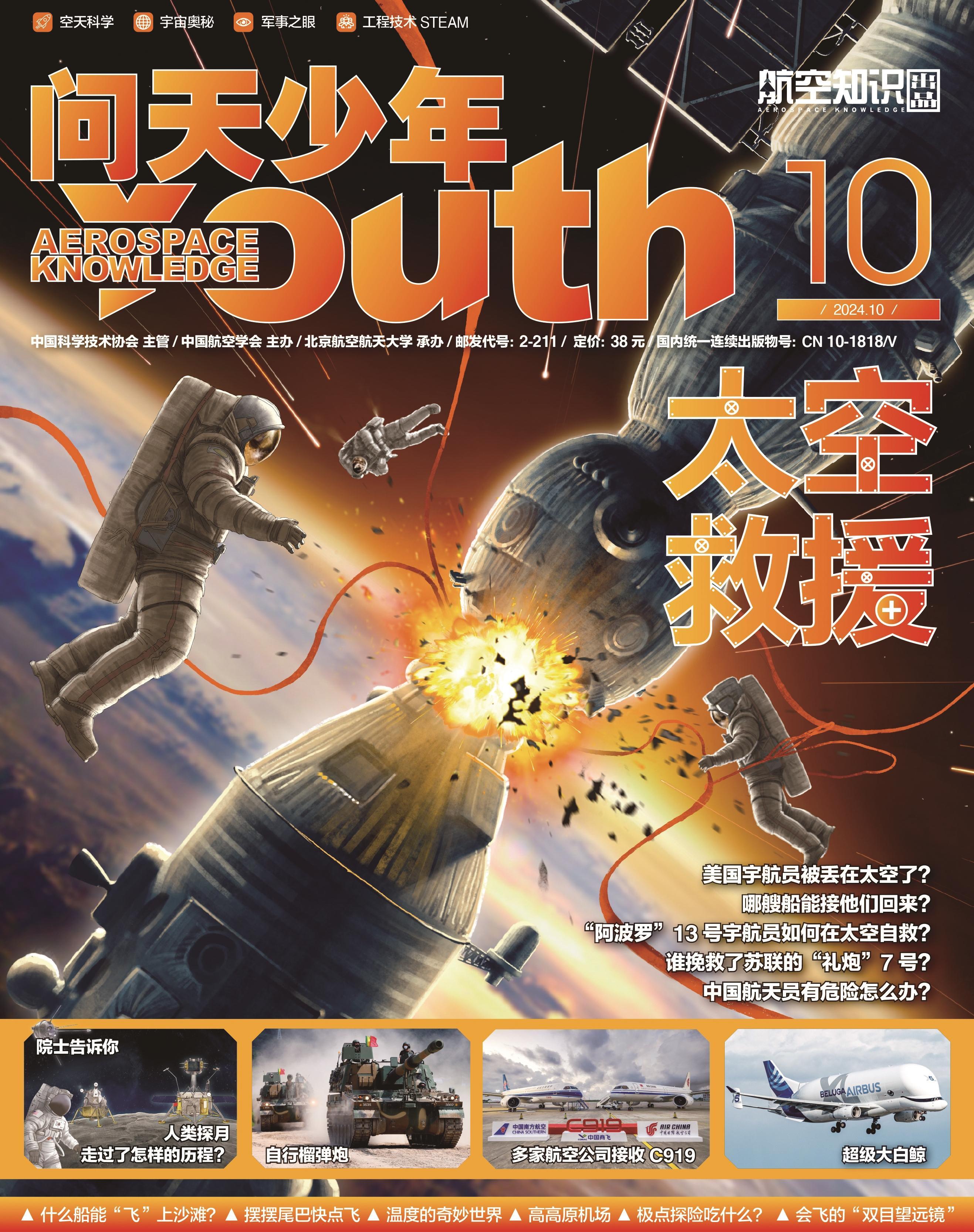 2024年第10期《问天少年》特别策划“太空救援”,将带你了解为什么波音的“星际客机”飞船将2名美国宇航员丢在了太空?哪艘船能去接他们回家?美苏太空竞争时期实施了哪些成功的太空救援?中国航天员在太空遇险时又有哪些应急方案?