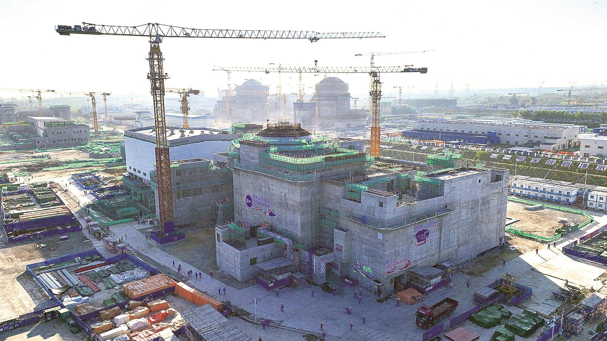 时隔多年,我国自主三代核电“华龙一号”、全球首个陆上商用模块化小堆“玲龙一号”相继在海南核电开工建设,开启了“双龙齐飞、三堆共建”的新篇章。记者在现场看到,上千名工人正在“玲龙一号”施工现场昼夜不停地进行设备安装调试工作。预计2026年建成的“玲龙一号”,年发电量可达10亿千瓦时,每年可减少二氧化碳排放量约88万吨,其环保效应相当于一年植树750万棵。