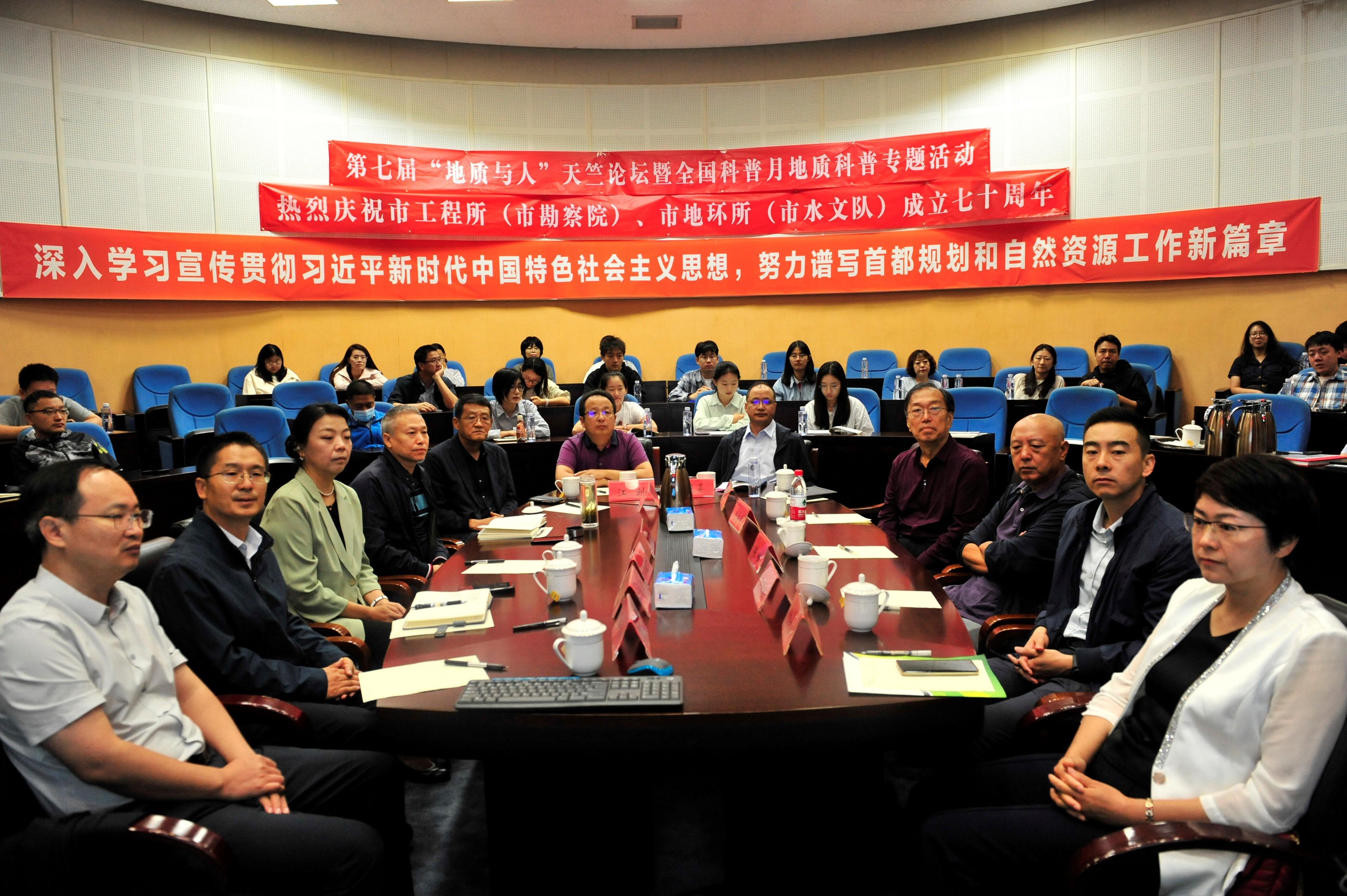 会议认为,举办本次活动的三重时代召唤。其一,响应国家战略的必然要求,不仅要将《中华人民共和国科学技术普及法》的精神落到实处,更要以地学知识服务社会,让科学的光芒照亮每一个角落。其二,传承七十载薪火的历史契机,七十年来从罗盘测量到遥感解译,从野外填图到智能建模,我们始终以爱国、创新、求实、奉献的科学家精神为指引,一以贯之地服务首都发展。其三,夯实科技强国根基的现实需要,期望通过学术交流与科普惠民活动,让更多人了解地质科学在守护城市地质安全、保障城市供水安全、促进生态文明建设中的重要作用,让“藏在地下的科学”走进公众视野,成为大家共同关注的话题。地质工作是经济社会发展的基础性、先行性工作,七十年来两所的地质工作者扎根北京,在地下水监测、地面沉降防控、工程地质保障等领域取得了令人瞩目的成就。今天我们以论坛为媒、以科普为桥,既是对历史的致敬,更是对未来的承诺。我们承诺让科学普及与科技创新同频共振,让地质智慧更好地服务人民、造福社会。