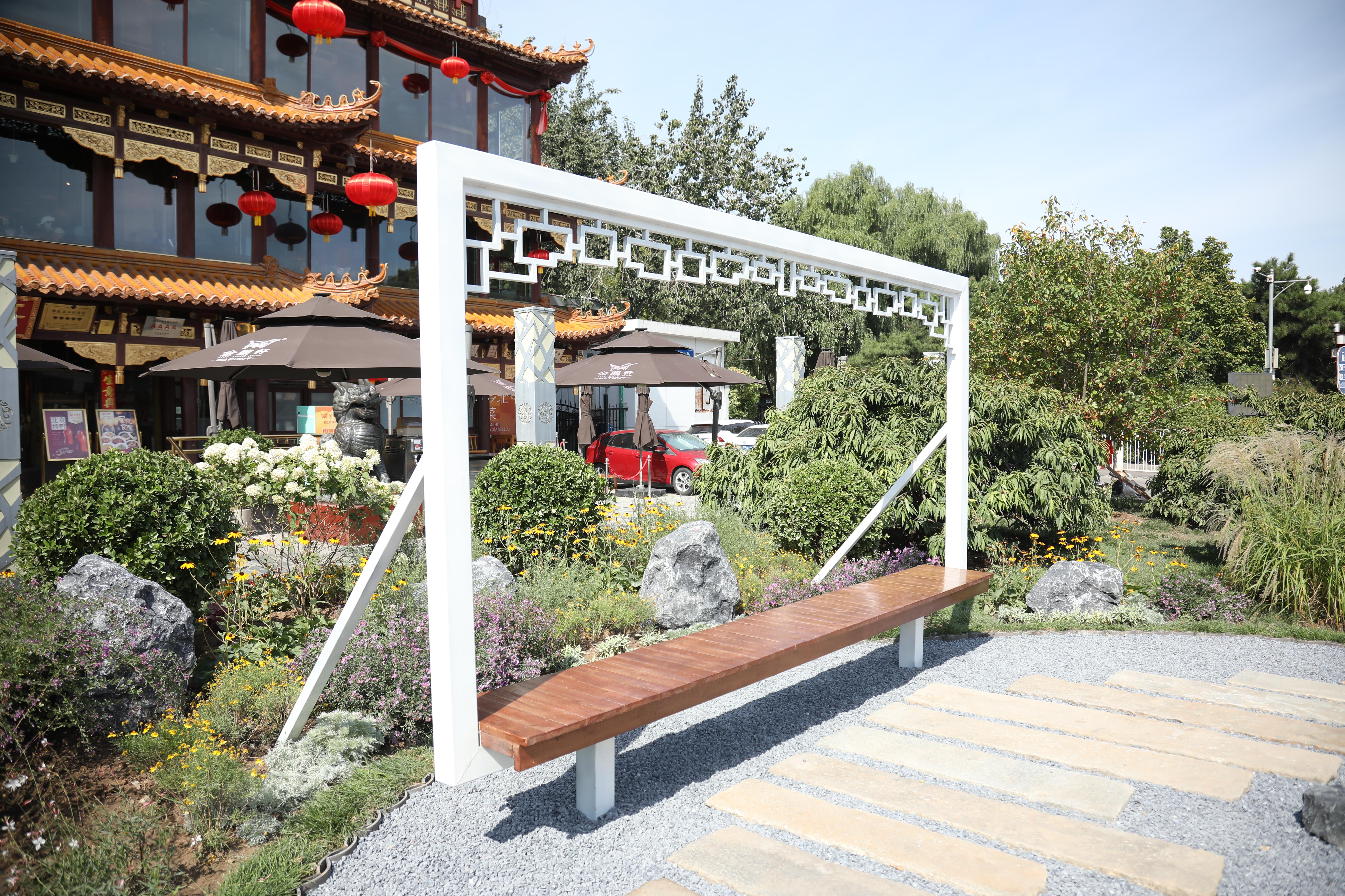 落地微花园严格遵循“植物乡土化”原则,优先选用低维护品种。项目由全国13个省市自治区的团队打造,京外团队带来的南方造景、西北乡土木等思路,为北京注入了新活力。亮点案例包括:德胜街道“蔬香花园”:以可食用植物为主题,成为集社交、亲子体验与自然教育于一体的复合空间;东城区“屋顶花园”:探索立体绿化,为同类项目提供生态与休闲兼备的范例;“周末花市花园”:结合广阳谷森林公园区位,融合生态景观与市民消费需求;“82米微笑花园”:将带状绿地变为用连续花带串联的社区情绪疗愈空间;地坛南门“以竹代塑”花园及白塔寺历史片区花园:分别彰显环保理念与延续古都风貌;消防站门前花园:通过“小火苗”“小水花”小品,强化消防安全意识;“福鸭花园”及东四街边花园:巧妙结合餐饮场景,打造活力商圈。