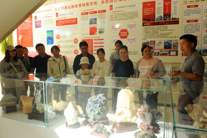 活动伊始,参加本次开放日活动的市民齐聚地质大厦,由地下水动态研究室主任孙颖作地质知识专题讲解。他介绍了地质科学的概念、地质工作的核心,带领大家参观了岩浆岩、沉积岩、变质岩等岩矿标本,讲解各类岩石的生成、基本特征、与人类生活的关联及野外识别方法。生动的讲解不仅让市民切实感受到地质研究的趣味性,更有效加深了大家对地球岩石世界的认知与理解。