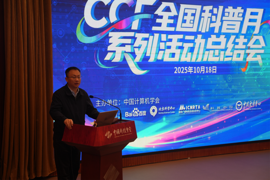 近日,由中国计算机学会(CCF)主办的首届“全国科普月-CCF科普行动”总结会在中国科技会堂举行。自9月6日启动以来,历时一个多月的科普行动取得了丰硕成果,点燃了全国各地青少年和公众的科学热情,显著提升了全民科学素养。中国科协科普部副部长任海宏出席并发表总结致辞,对CCF科普月的工作给予了高度肯定。