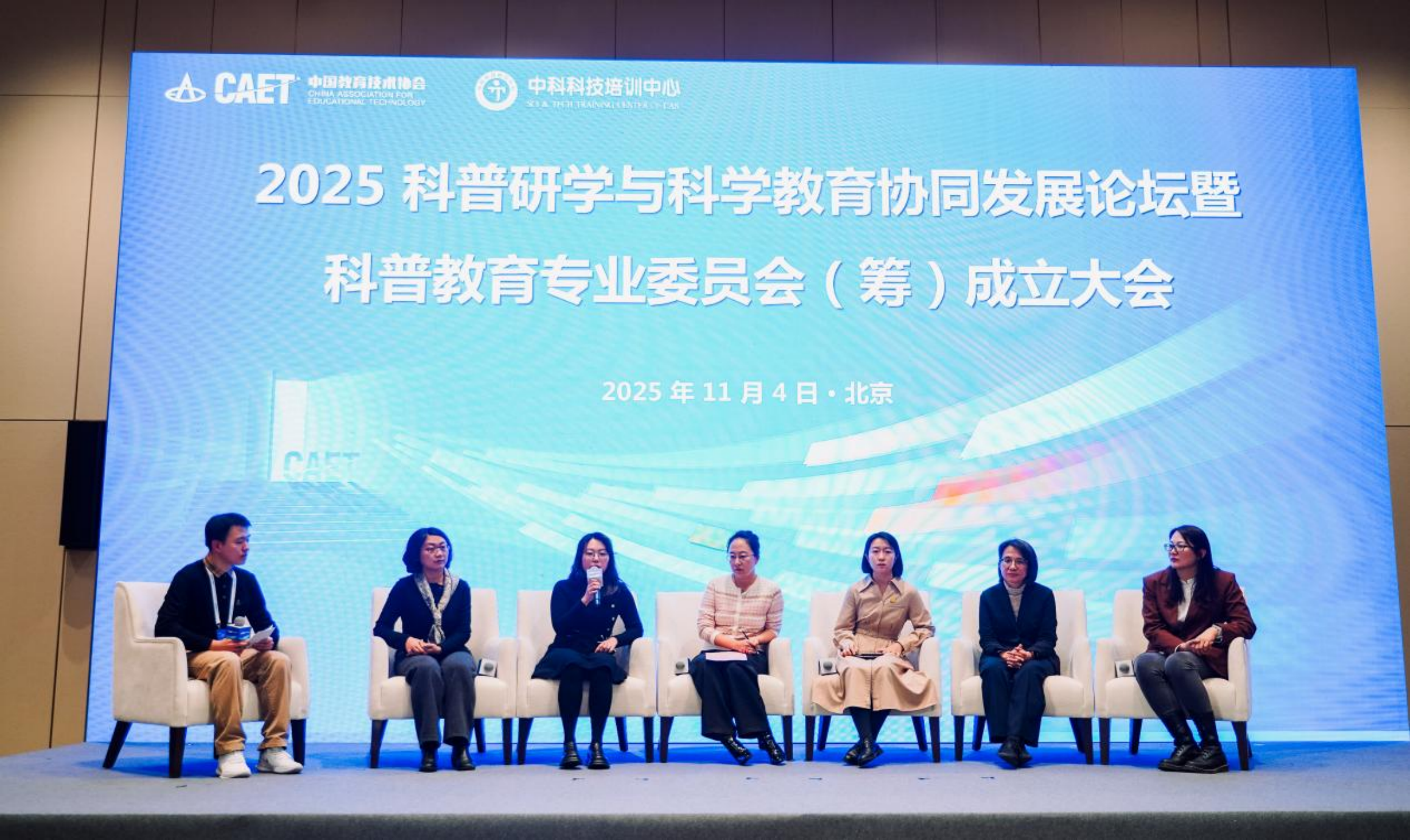 11月4日,科普研学与科学教育协同发展论坛暨中国教育技术协会科普教育专业委员会成立大会,在北京国家会议中心二期盛大召开。此次论坛由中国教育技术协会科普教育专业委员会主办,中科科技培训中心承办,汇聚科研院所、高等院校、中小学校、行业企事业单位及主流媒体的200余位代表,以推动科普研学与科学教育高质量发展为目标,开启一场关乎科教协同的深度对话。