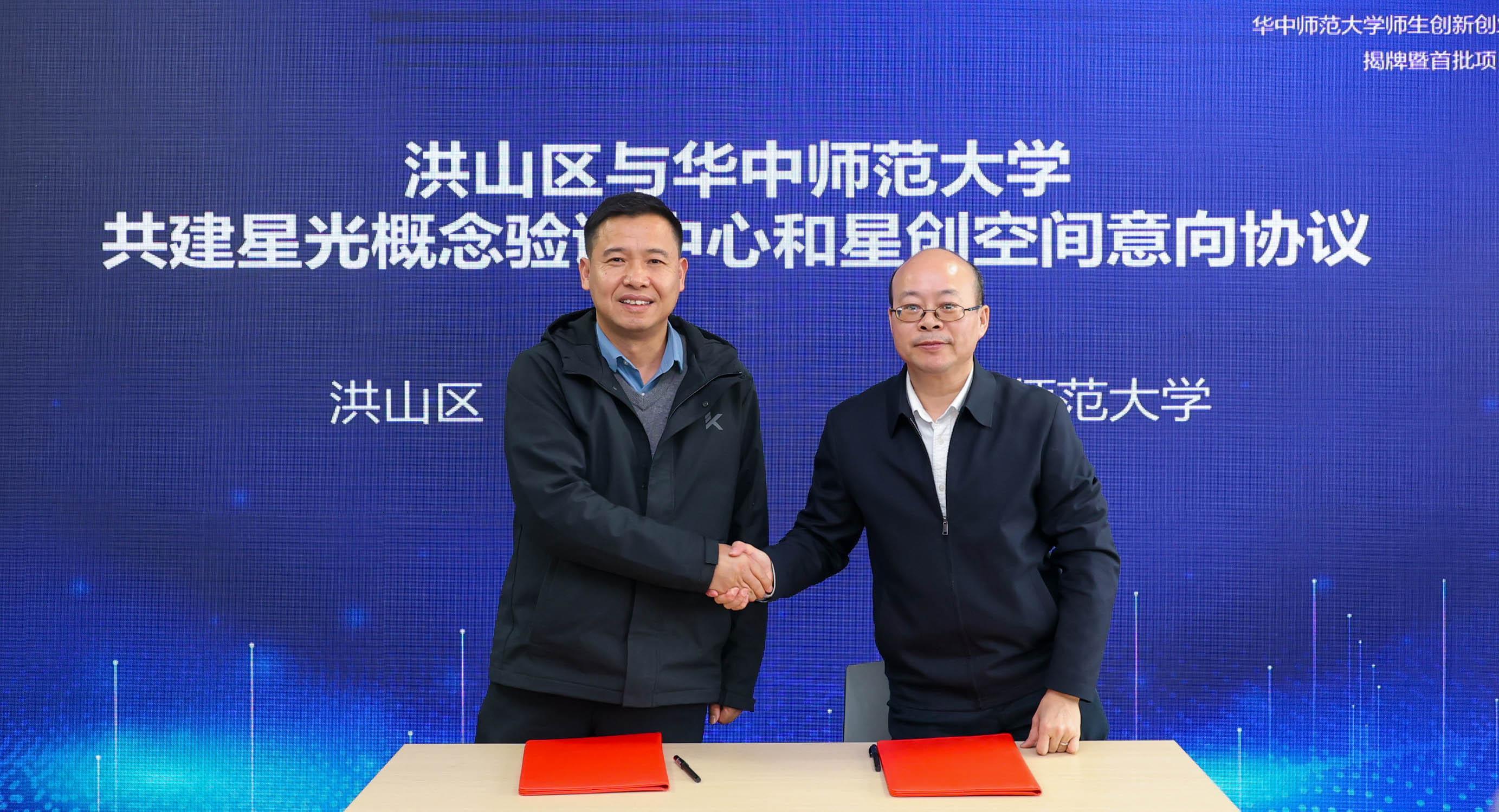 活动现场,洪山区与华中师范大学签署共建“星光概念验证中心”和“星创空间”意向协议,进一步深化校地科技成果转化与项目孵化协同机制,为师生项目从“创意”到“落地”架设关键桥梁。