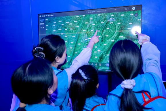 在文昌航天超算中心,童心港湾的孩子们见识了航天浪漫背后的“超级大脑”。指示灯如星河闪烁,每秒钟数千万亿次的精准计算保障着航天器的安全。孩子们与机器狗玩耍,观看卫星模型,争先恐后地在卫星地图上寻找位于大山深处的家乡……杨瑞悦在研学日志里写道:“我迅速感到了祖国科技发展之快,我都能和AI下棋了!我很惊讶。”