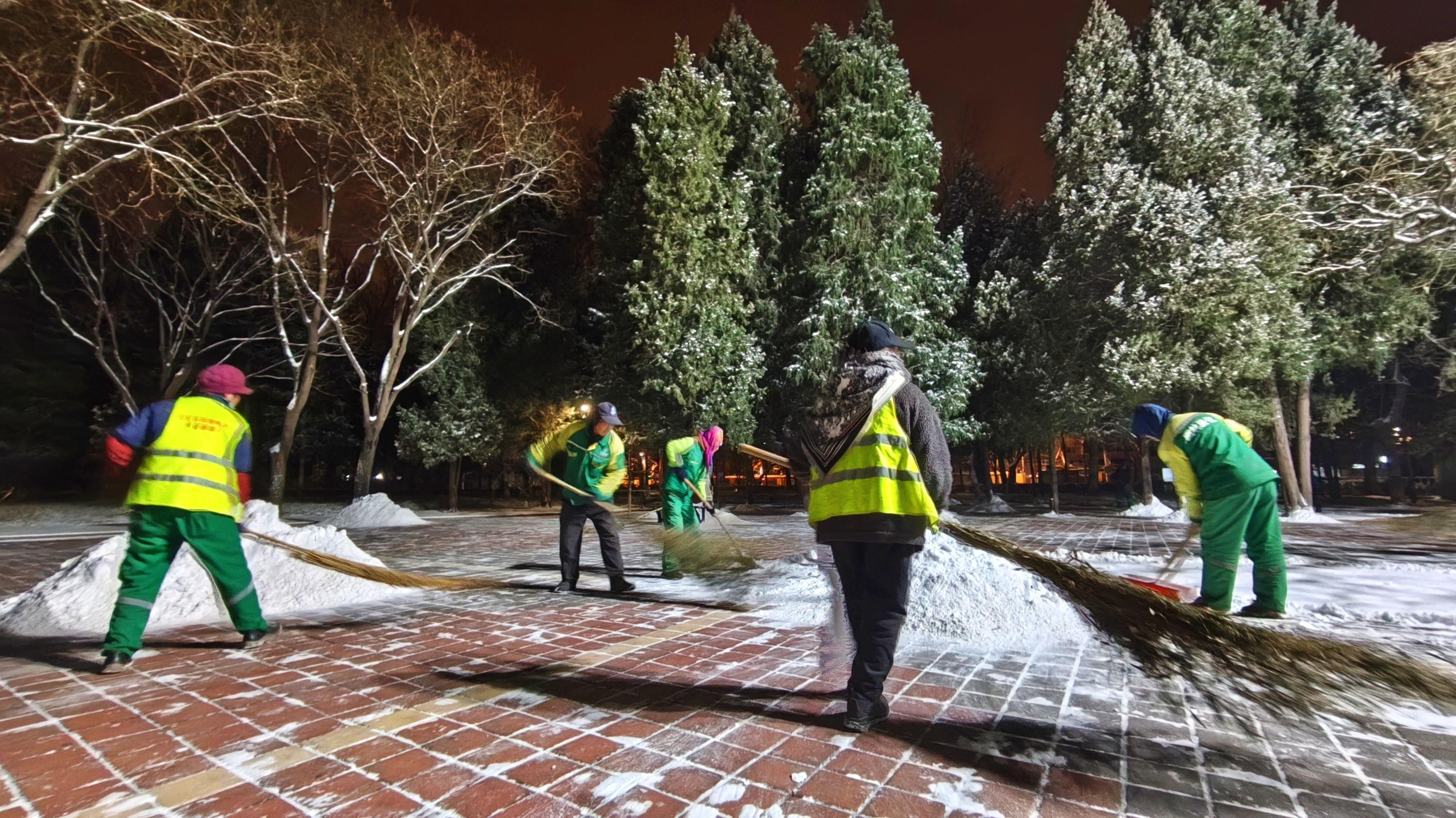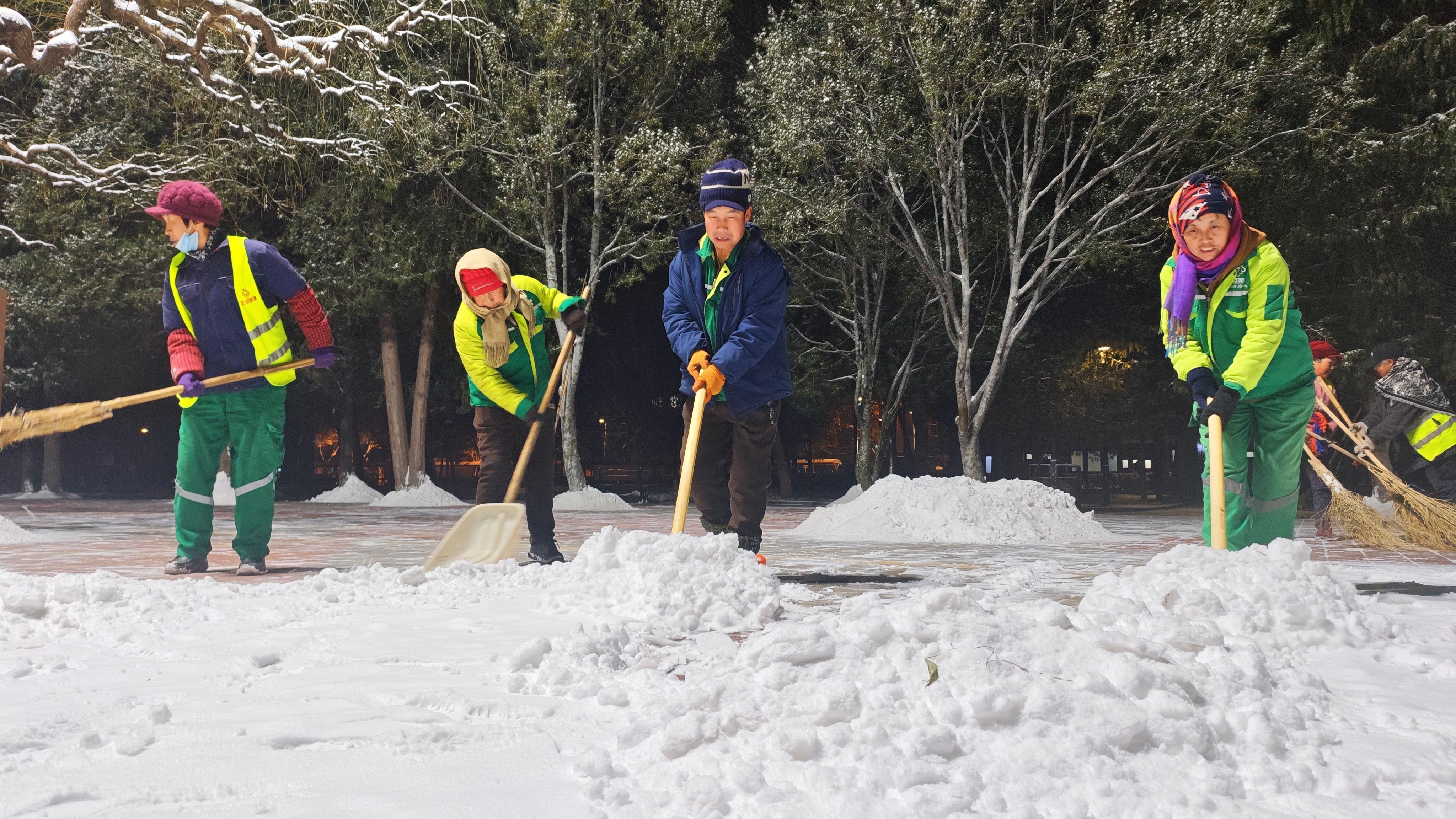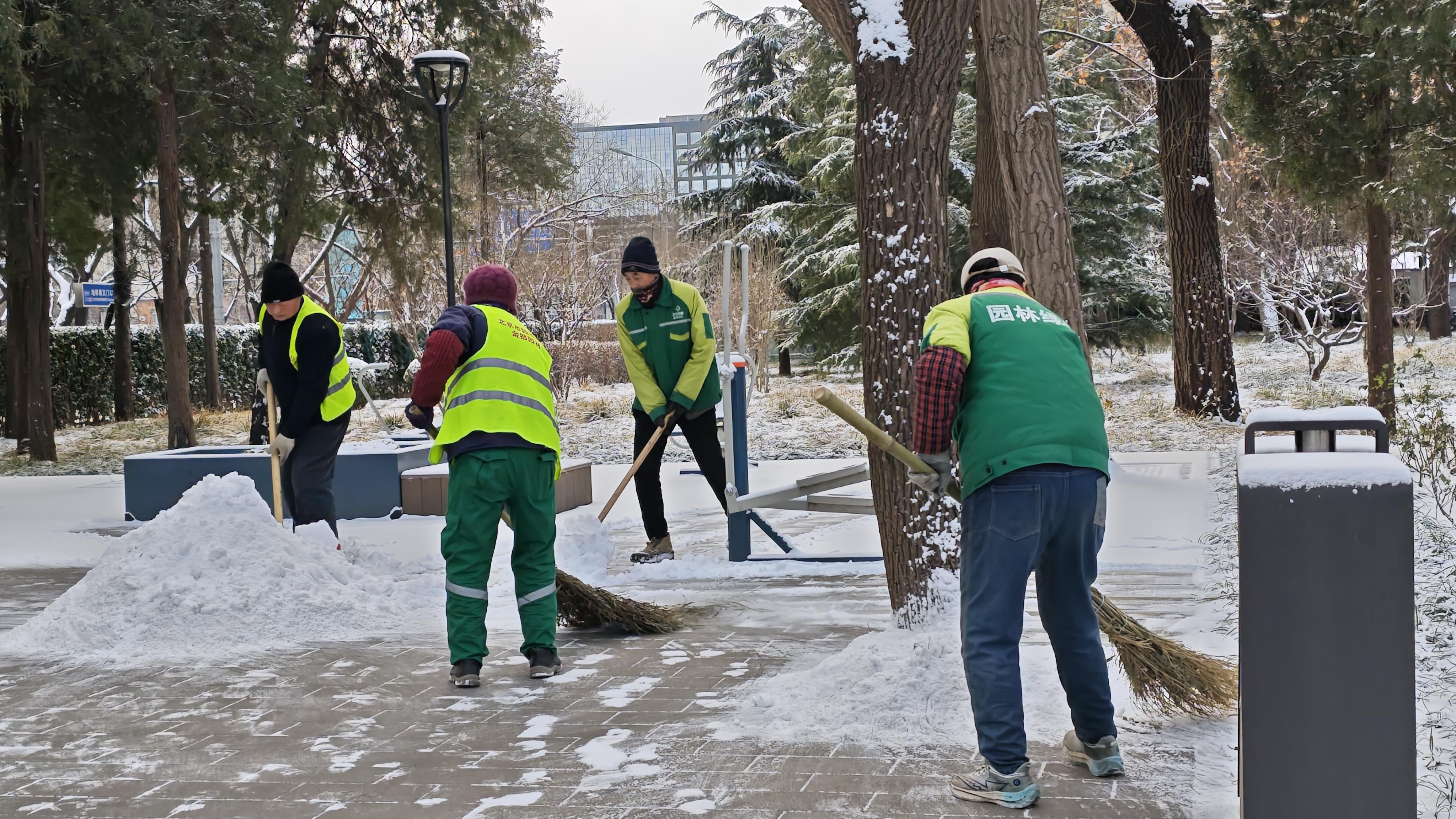 据悉,为了应对突发情况,北京市园林绿化局启动了绿地养护应急预案,备足竹竿、推雪板、油锯、应急车辆等物资。重点针对常绿树、绿篱色块及紫薇、木槿、丝兰等不耐寒树种开展积雪清理,采用人工轻拍、竹竿疏导等方式清除枝冠积雪,避免积雪压弯压折枝条或引发冻害;及时处置折枝、倒树,摘除树挂杂物,修补破损防寒风障。