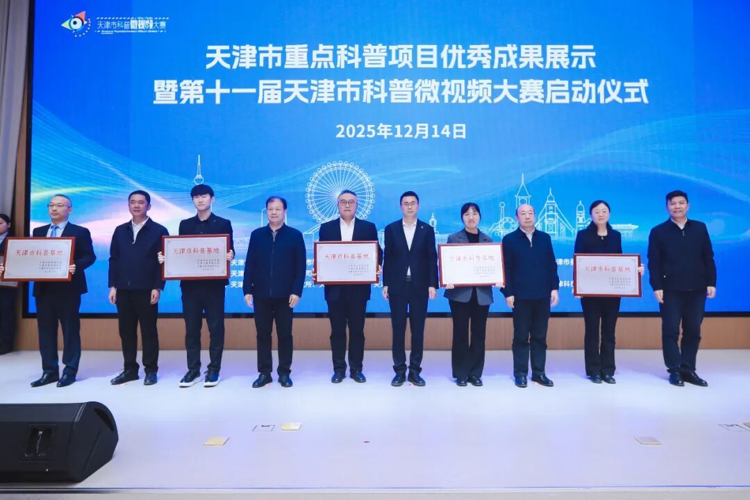 活动在回顾本市重点科普项目成果的综合视频中拉开序幕,通过优秀作品视频播放、情景短剧表演、科普演讲、科学实验展演及科普图书分享等多种形式,集中展示了我市在科普载体建设、品牌活动打造、青少年科学教育等方面取得的突出成绩。与会领导为本年度天津市科普微视频大赛、科普讲解大赛、科学实验展演汇演活动的获奖选手代表颁发了证书,为2025年新认定的天津市科普基地代表授牌,并共同启动了第十一届天津市科普微视频大赛。