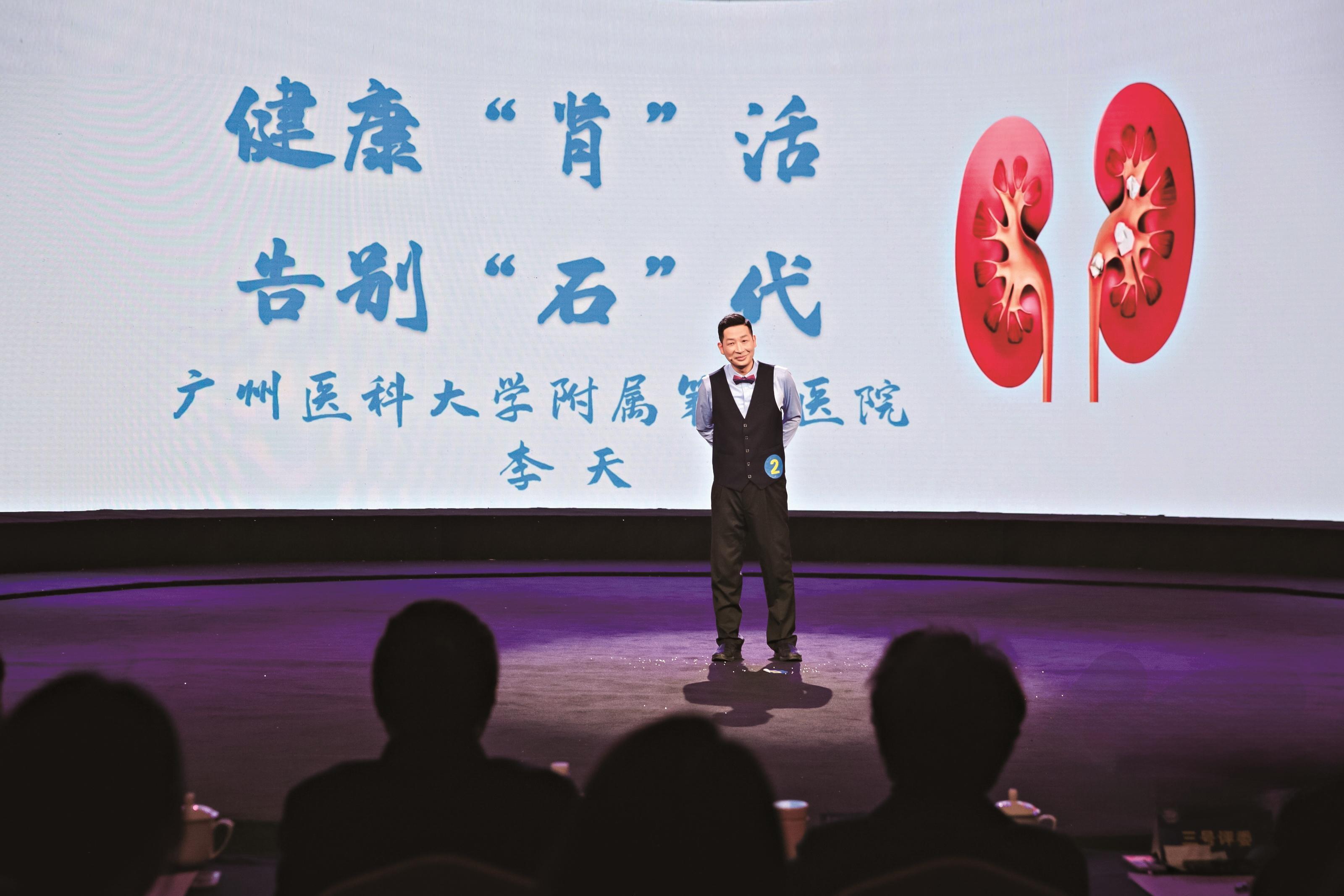 “如果尿液排泄不畅,代谢物日积月累……就形成了结石。家里有矿,富不富我不知道,但‘石’在是疼啊。”舞台上,广州医科大学附属第五医院泌尿外科主任医师李天一开口,便引得台下笑声一片。