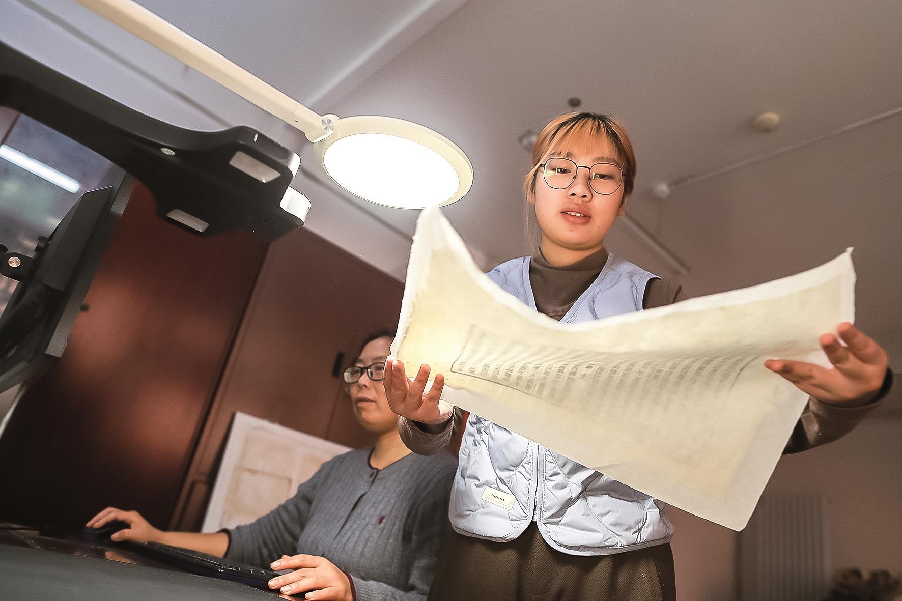 古籍修复需要经过材质检测、修复材料选配、修补、装订等若干流程。