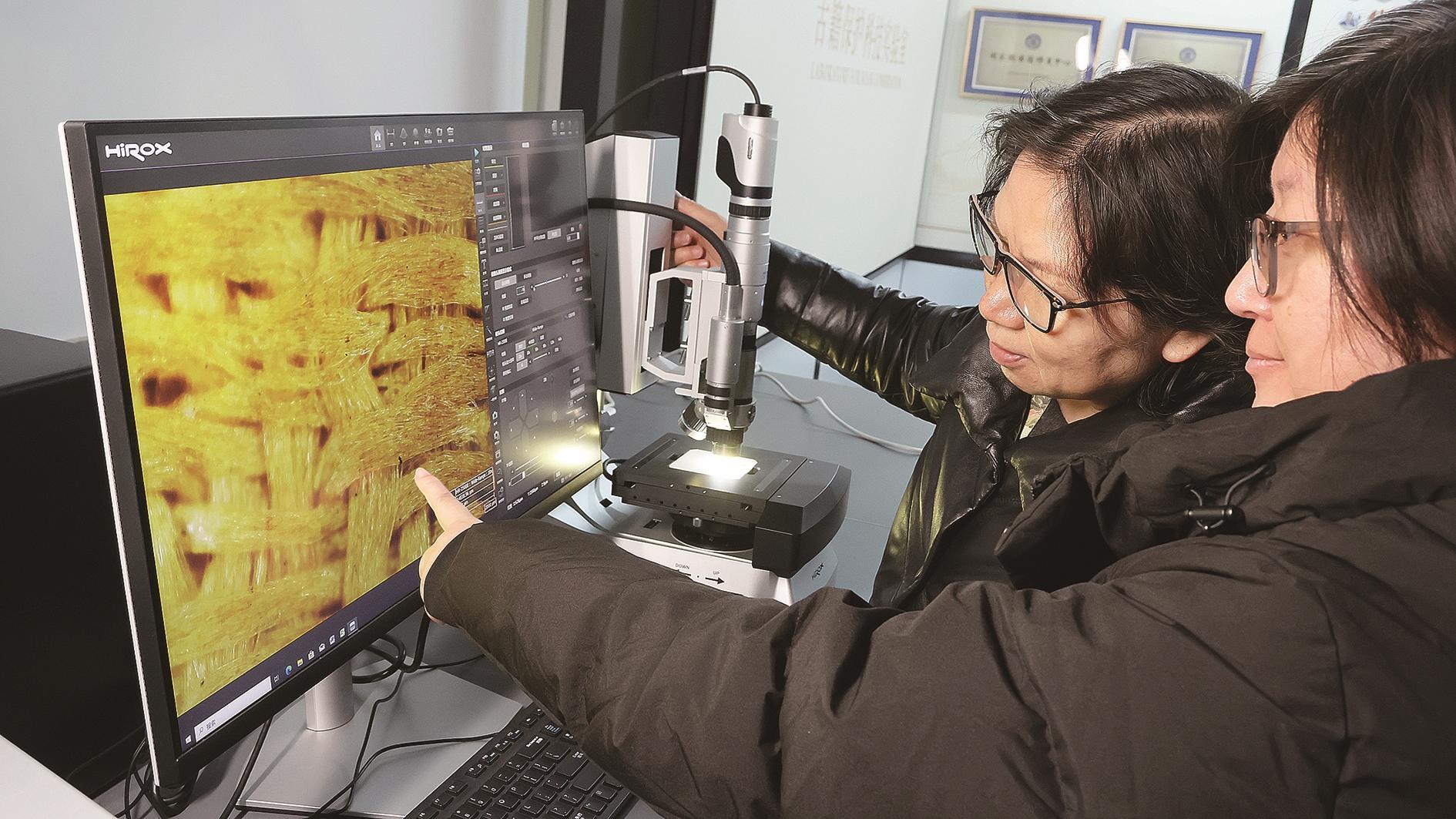 以前,古籍各部分材质的判断主要依赖于修复人员的经验和肉眼观察。如今,通过仪器检测,就能观察原书各部分的纤维形态特征,分析判断其材质属性,为制订修复方案和选配修补材料提供科学依据。
