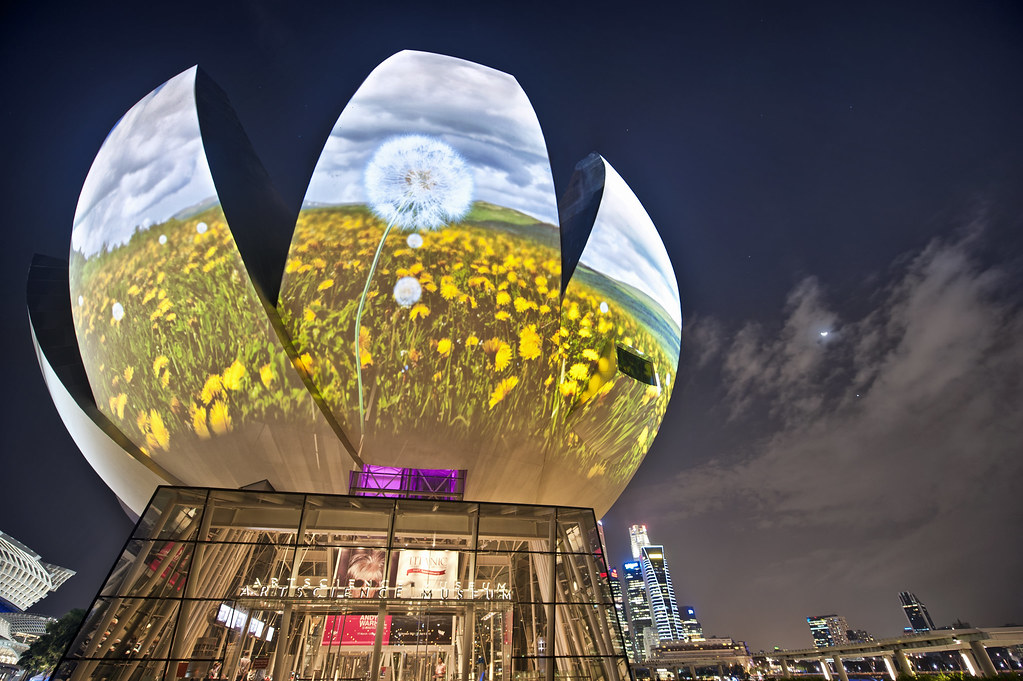艺术科学博物馆位于新加坡滨海湾(金沙),是新加坡的地标式建筑,由国际知名建筑师摩西萨迪设计,是世界上首个艺术科学相结合的博物馆。整个建筑都被一个荷花池围绕着,犹如一朵绽放的莲花在水边盛开。摩西萨迪说,“滨海湾金沙的主建筑像一个空中飞船,是动态的;博物馆则像一朵含蓄的莲花,是静态的。两者不只不会有抵触,反而相互衬托。”博物馆的结构也形似伸展的手指,因此常被称为“新加坡之手”,象征新加坡欢迎世界宾客。自然光透过每个“指尖”照进博物馆,以最佳光线展示每件展品。