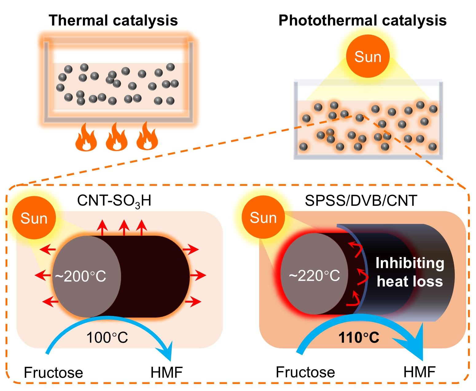 更具代表性的成果体现在生物质转化领域。研究人员用表面封装磺酸化聚合物的碳纳米管构建光热催化体系。