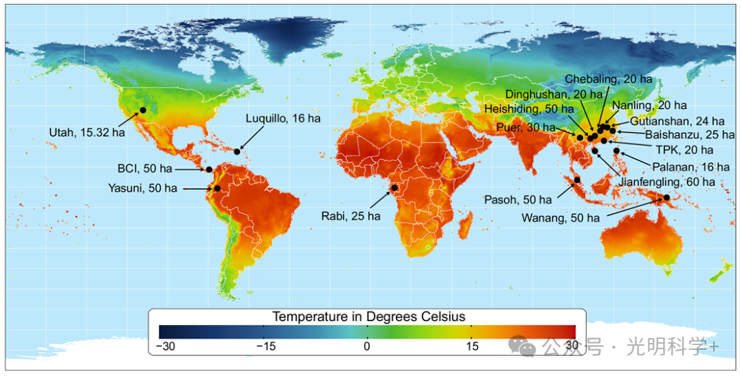 该论文的研究数据得到了多个大样地的支持,其中包括中国林科院建设的海南尖峰岭60公顷大样地和云南普洱30公顷大样地、广东4个样地,以及国内外其他多个样地,为研究结论的可靠性提供了坚实的数据保障。