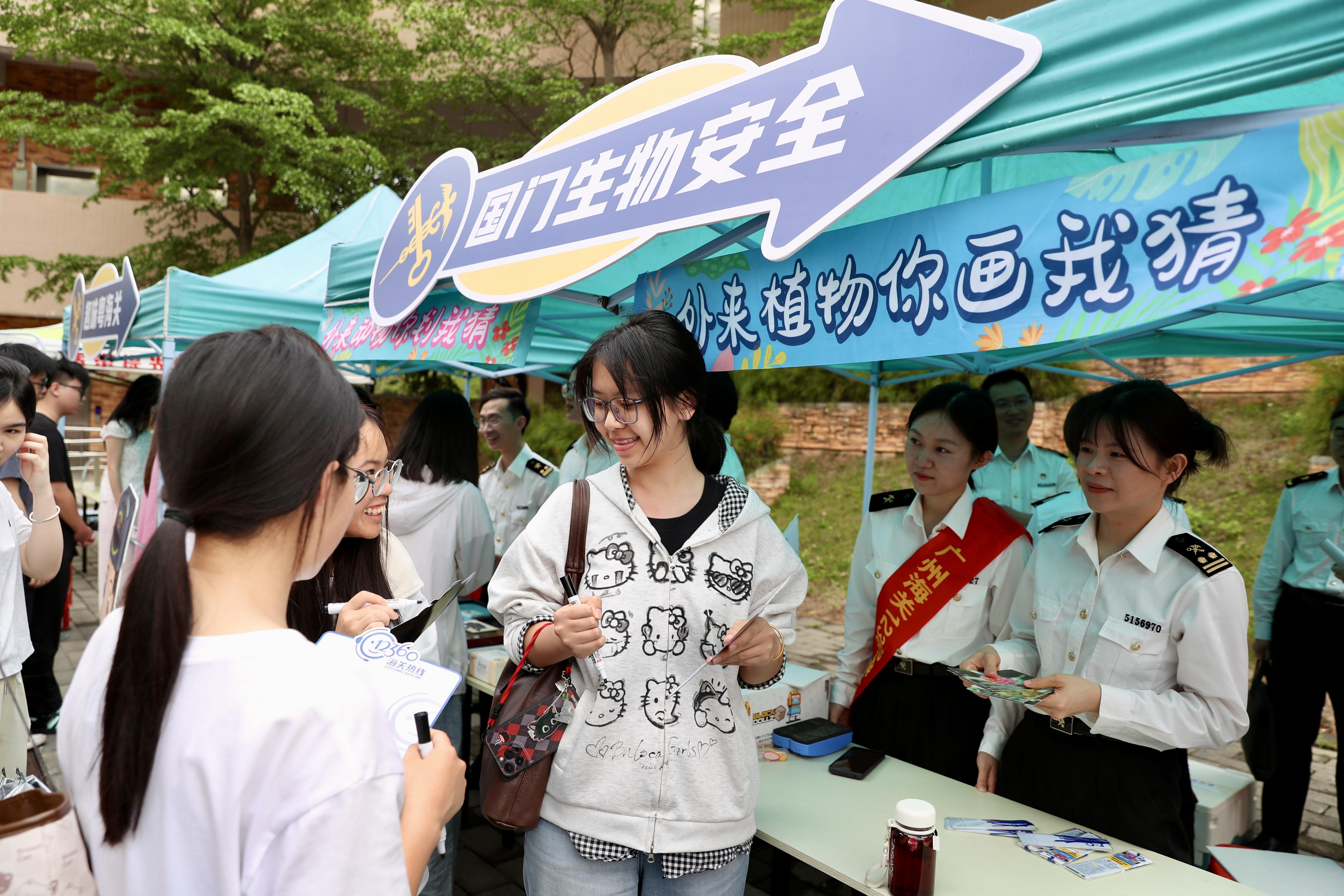 今年4月15日是第十一个全民国家安全教育日,为深化青少年对国门安全重要性的认识,广州海关的志愿者们走进广东财经大学,开展“国门安全 青春同行”公益科普活动。通过设置互动展区、实景演示与现场讲解相结合的方式,为在校大学生呈现了一堂生动直观的国门安全教育课,引导青年学子提升国家安全意识,增强防范能力。