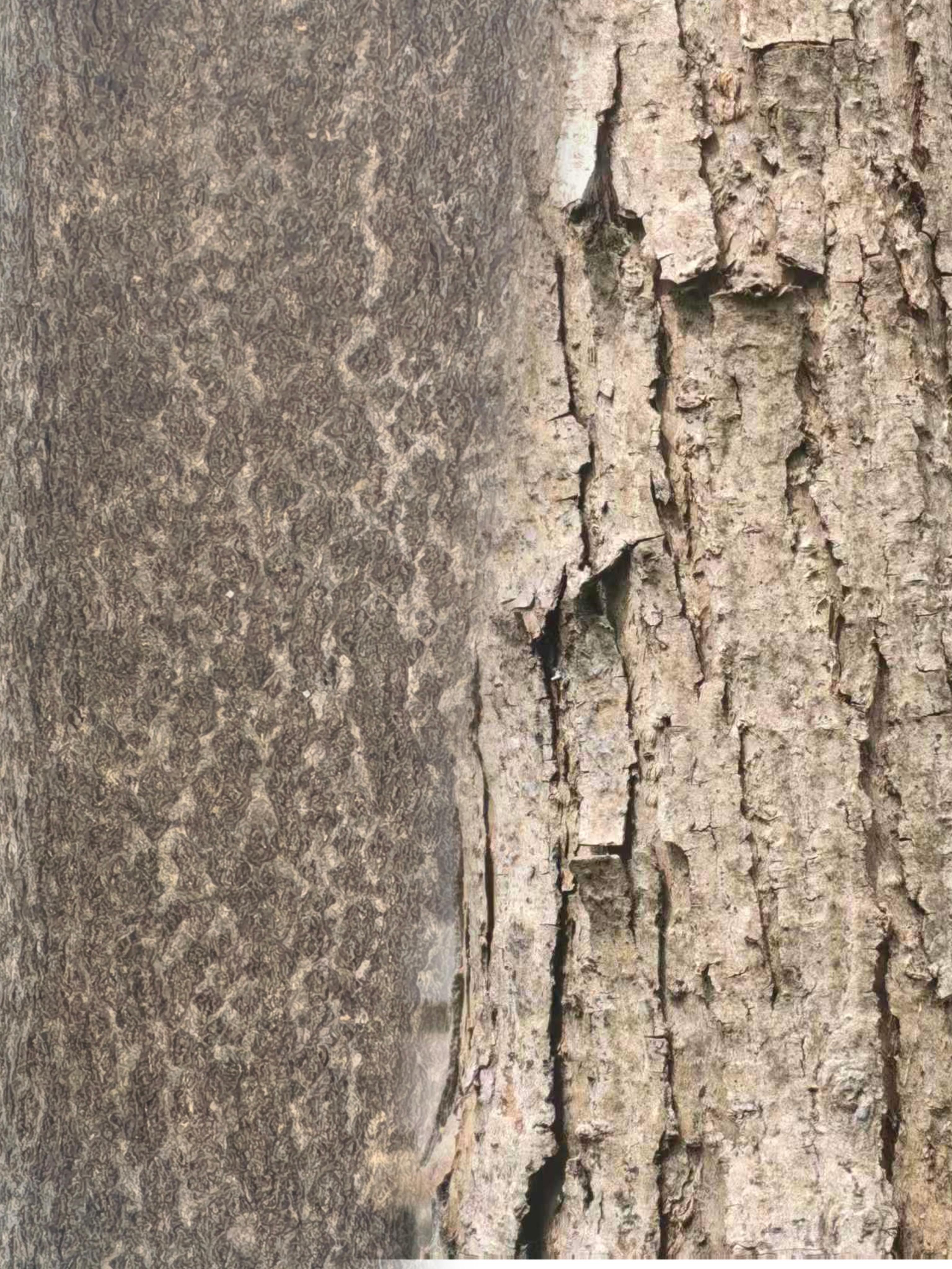 摸树干:手感纹理差异明显。若叶片看不清楚,还可以触摸树干。臭椿树皮相对平滑,带有竖直纹路;而香椿树皮则有清晰的片层感,呈条状裂纹。