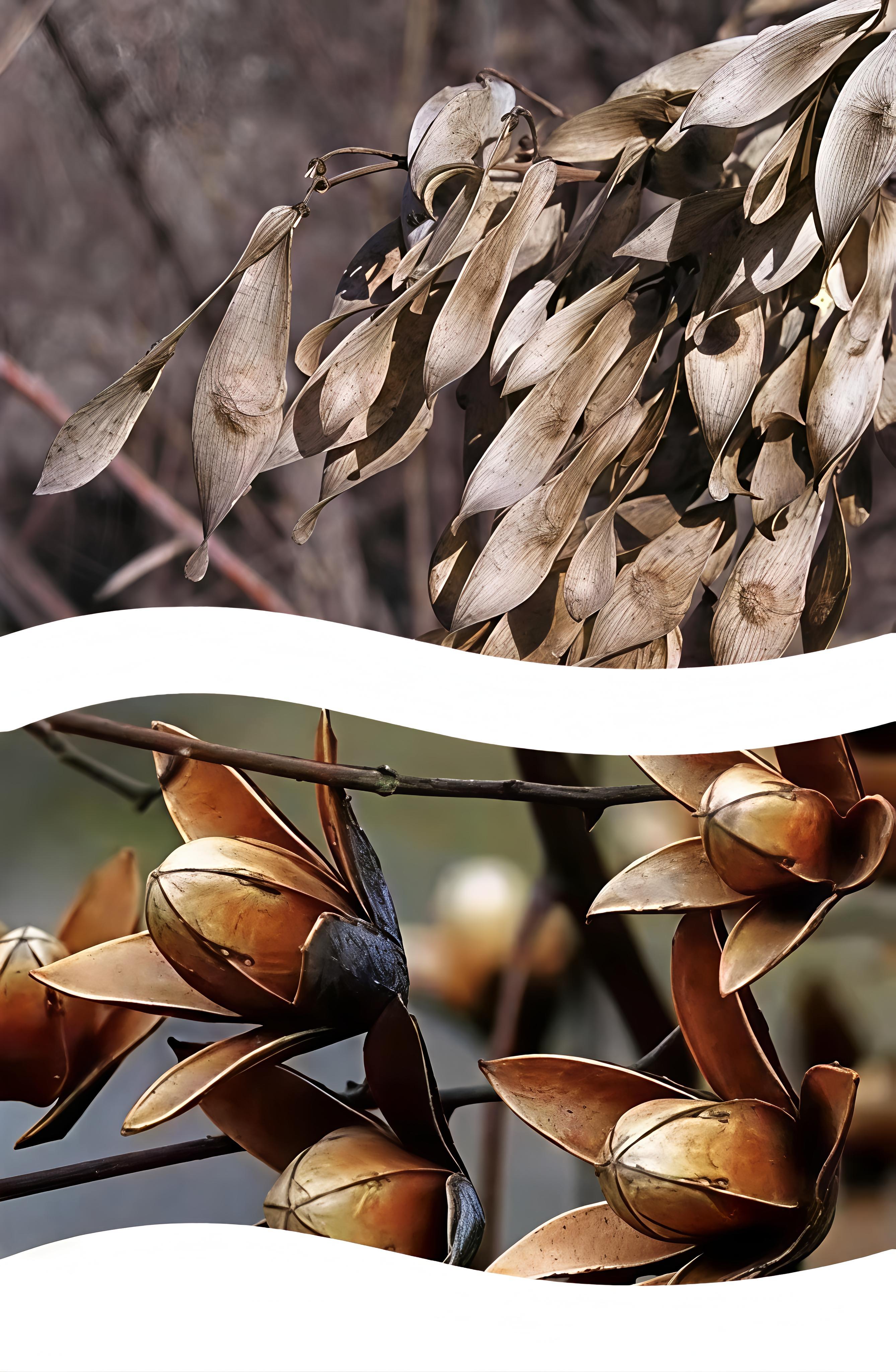 看果实:不同季节也能辨真假。如果错过了春天发芽季节,通过果实也能准确区分。臭椿的果实为翅果,扁平的果实周围生长着一圈薄翅,可随风飘散;香椿果实为蒴果,呈椭圆形硬质果壳,成熟后会自然开裂。