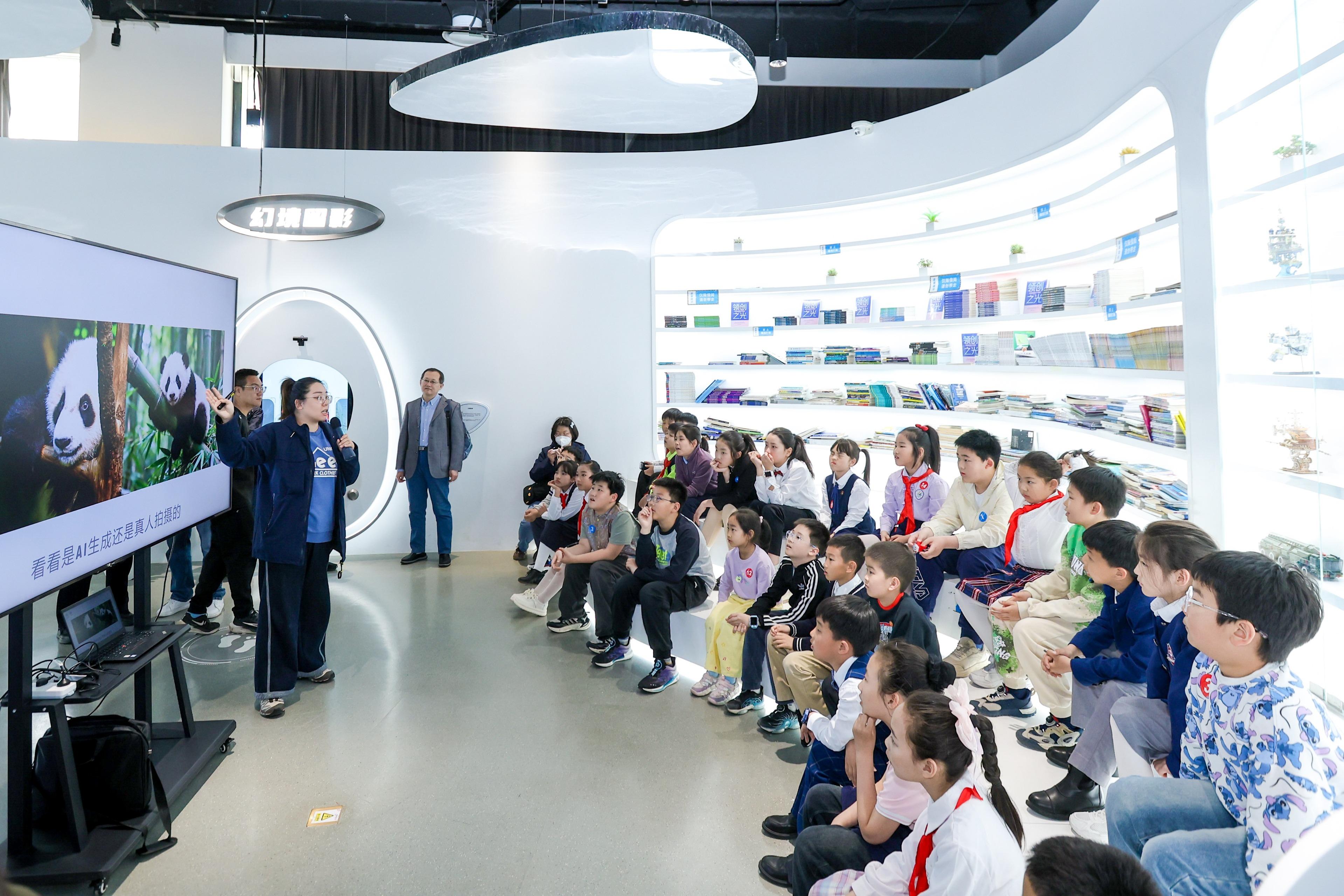科幻教育主题活动依托北京科学中心“AI·创想记”首都青少年科幻教育空间主题展,以“AI+科幻”为双引擎,把抽象技术转化为可感知、可操作的内容,以场景任务为载体,旨在让幻想落地为具体作品,在科幻共创中释放孩子的想象力。走进展览,小讲师们通过沉浸式体验与聆听讲解,直观了解AI在生活与学习中的多元应用,初步建立起对人工智能的认知。