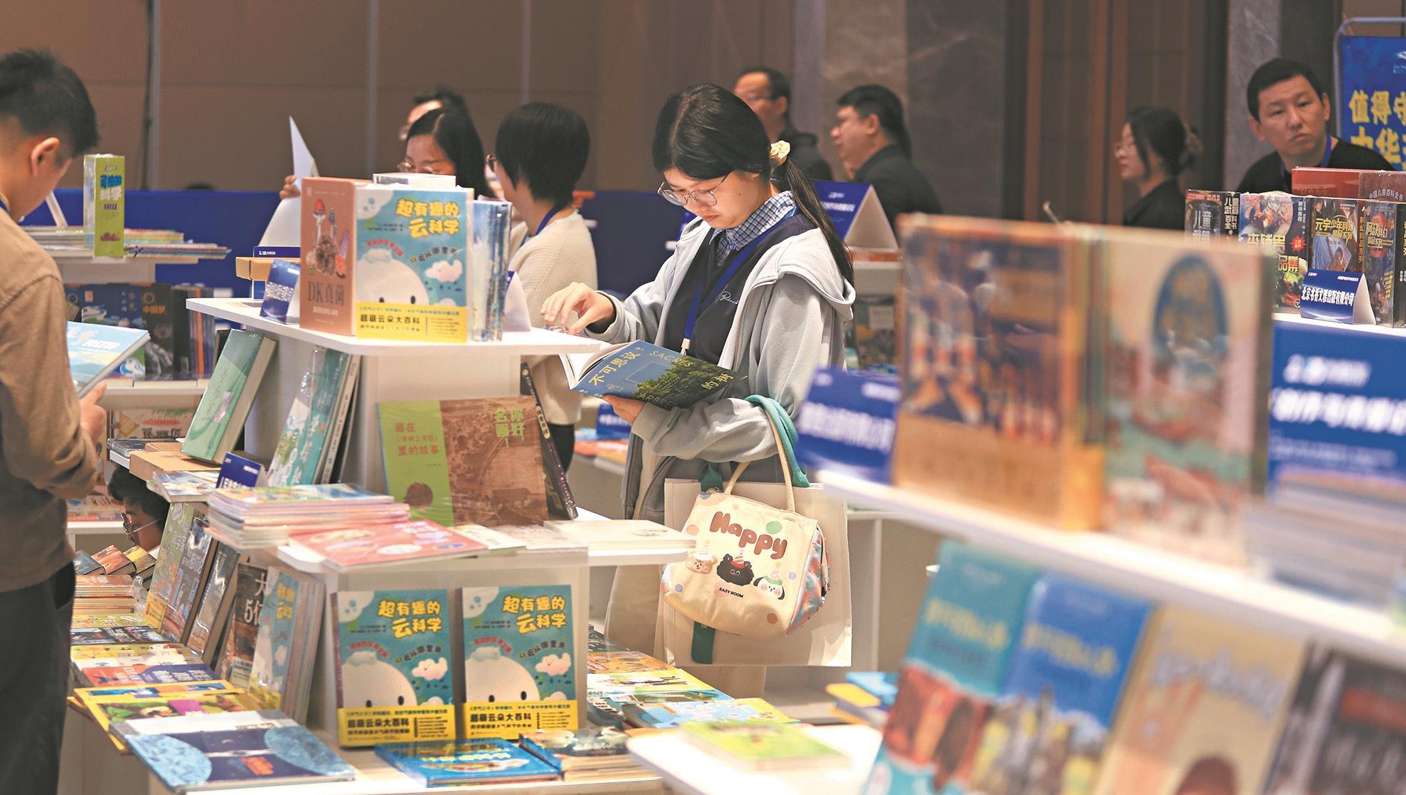 10月15日,2025东湖论坛——“科普图书创作与传播论坛”在湖北武汉举办。论坛同期举办科普图书作品展,全国各地35家出版机构带来近1000本科普图书参展。图为参会嘉宾在展台阅览科普图书。科普时报记者 季春红 摄
