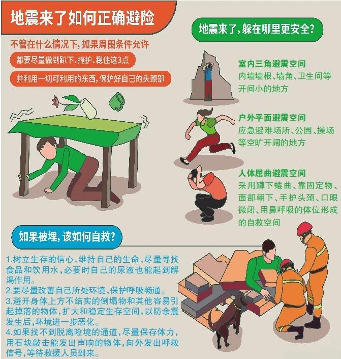 当地震发生时,“震时就地避险,震后迅速撤离”是应急避震的基本准则。