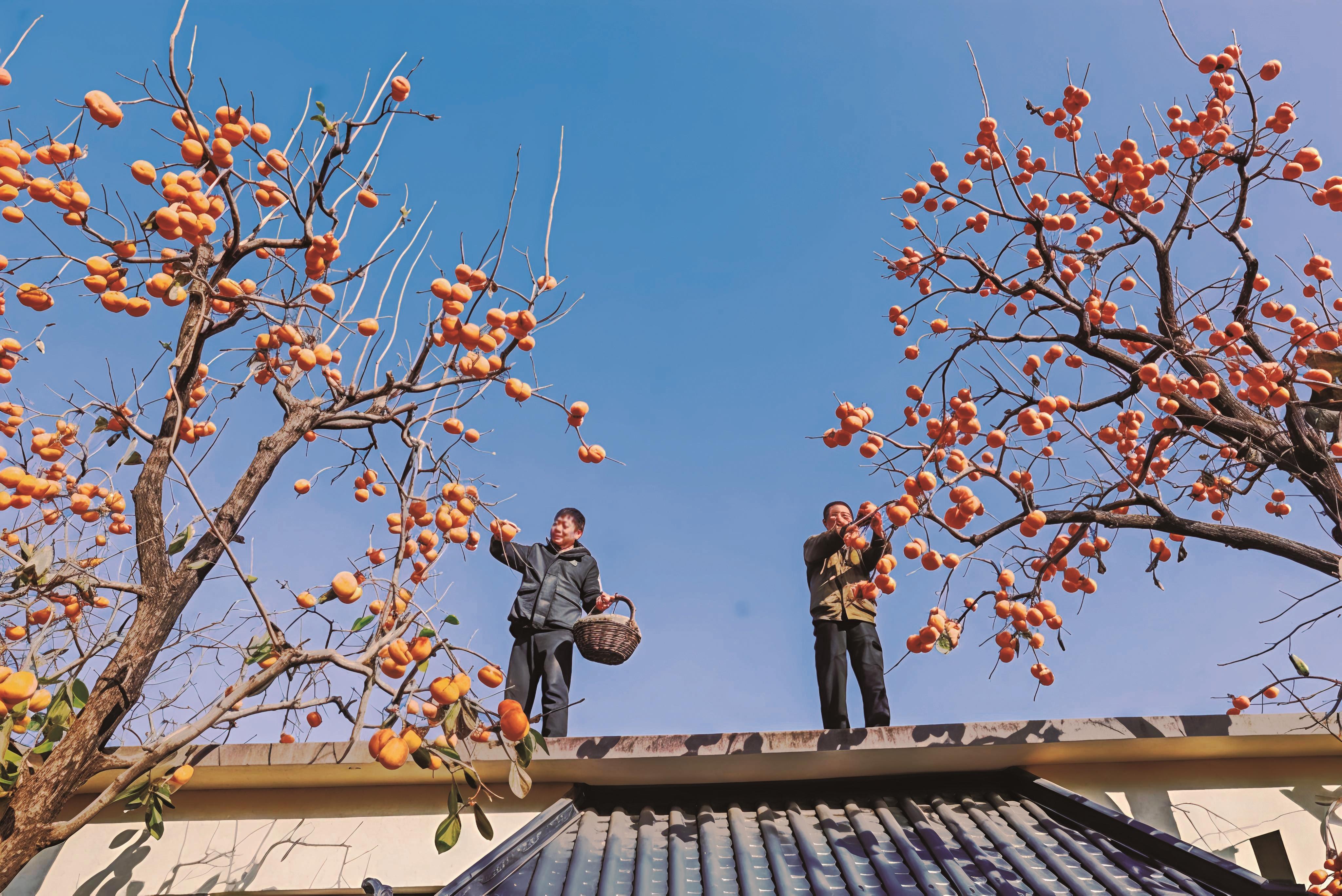 金秋时节,山西、河北等地的柿农迎来了一年一度的采收季。在这大自然中万物慢慢沉寂之际,柿子树俨然成为了秋日的一道风景线:十几米高的树干扎实挺拔,修长的枝丫伸向天空,叶子已经不复夏日那般翠绿葱郁,枝头红艳的柿子却在秋风中极为瞩目,像一盏盏鲜亮的灯笼,又像一颗颗晶莹的宝石。