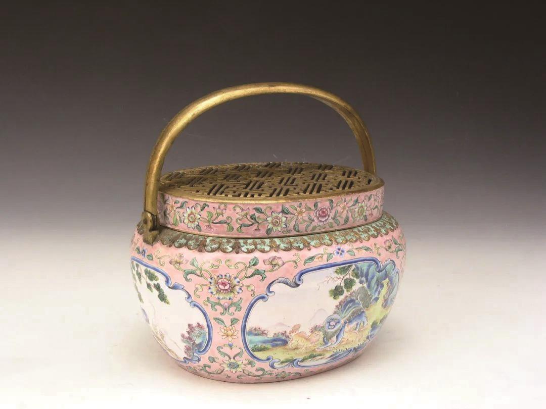你可能会想到《红楼梦》中,雪雁给黛玉送手炉的情节。没错,手炉就是古人的“暖宝宝”。清代流行珐琅彩手炉,比如,右面这件——