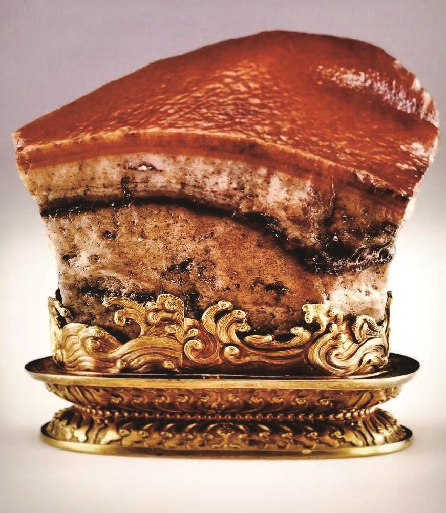 东坡肉形石肉皮、肥肉、瘦肉层次分明,色泽诱人,连肌理与毛孔都细腻又逼真,酷似真实的东坡肉,仿佛散发着肉香。